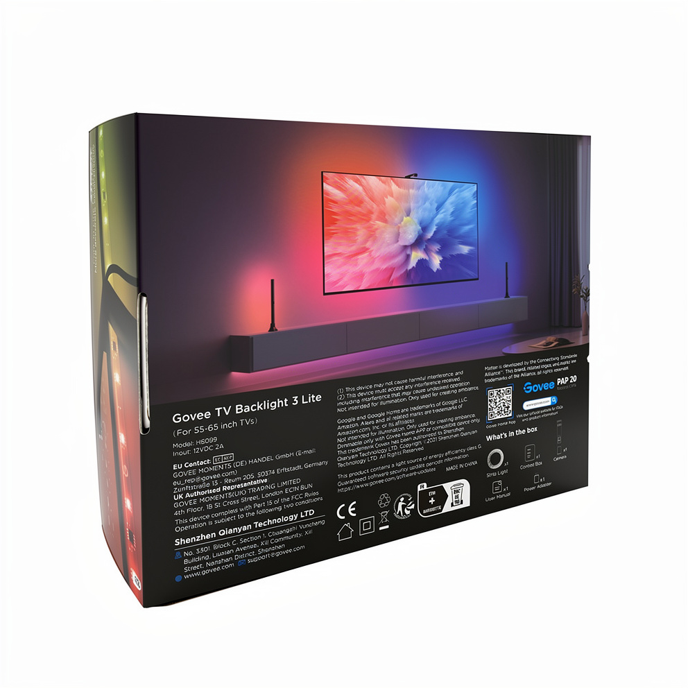 | Produktbeskrivelse | Govee TV Backlight 3 Lite H6099 - lysrem - LED - 30 LEDs/m - RGBICW |