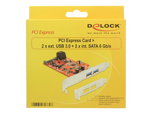 | Produktbeskrivelse | Delock - lagring / USB3.0 controller - USB 3.0 / SATA 6Gb/s - PCIe 2.0 x1 |