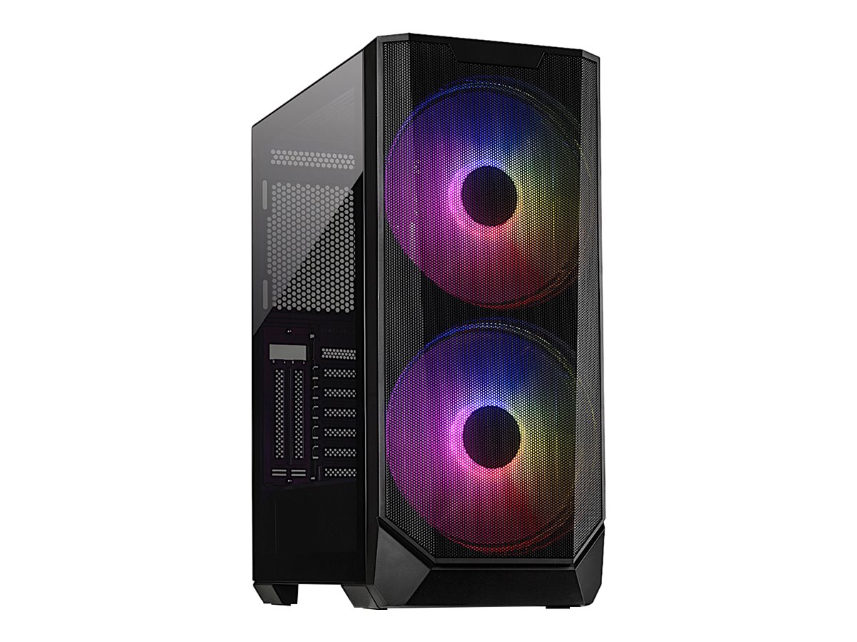 Egenskaber, systemkabinet Top panel støvfilter, støvfilter i bunden, aftagelige støvfiltre, ASUS Aura Sync RGB illumination, ASRock Polychrome SYNC, MSI RGB Mystic Light Sync, ARGB-blæsere, LED-kontrolknap, understøtter 120/140/240/280 mm vandkølingssystem