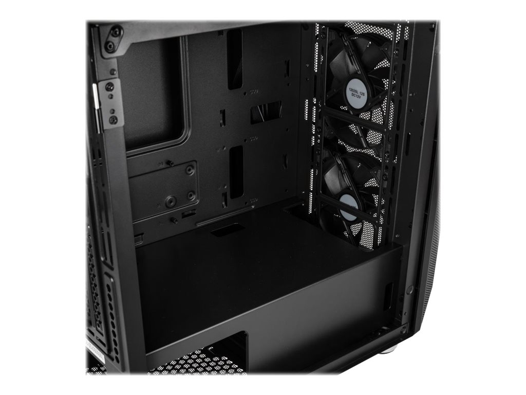 | Egenskaber, systemkabinet | Meshed front panel, kabeladministrations-system, understøtter 240 mm radiator i toppen, understøtter 280 mm radiator i frontpanel, støvfilter i bunden, topmagnetisk støvfilter, RGB-knap, PSU-dække |
