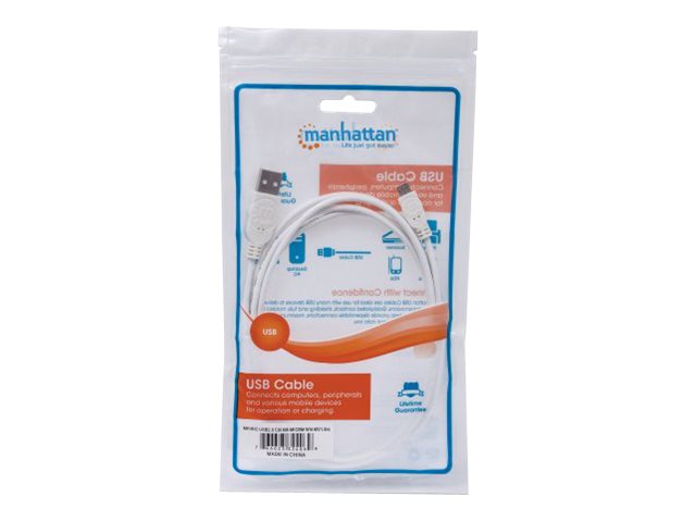 | Produktbeskrivelse | Manhattan USB-A to Micro-USB Cable, 1.8m, Male to Male, 480 Mbps (USB 2.0), Hi-Speed USB, White, Lifetime Warranty, Polybag - USB-kabel - USB til Micro-USB Type B - 1.8 m |