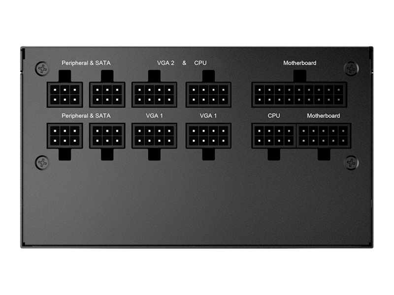 | Output-stikforbindelser | 1 x strøm 24 pin ATX<br>2 x strøm 8 pin EPS12 V med aftagelig 4 pin ATX12V sektion<br>4 x 8 pin PCI Express-strøm med aftagelig 2 pin sektion<br>6 x 15 pin Serial ATA strøm<br>5 x 4-PIN intern strøm |