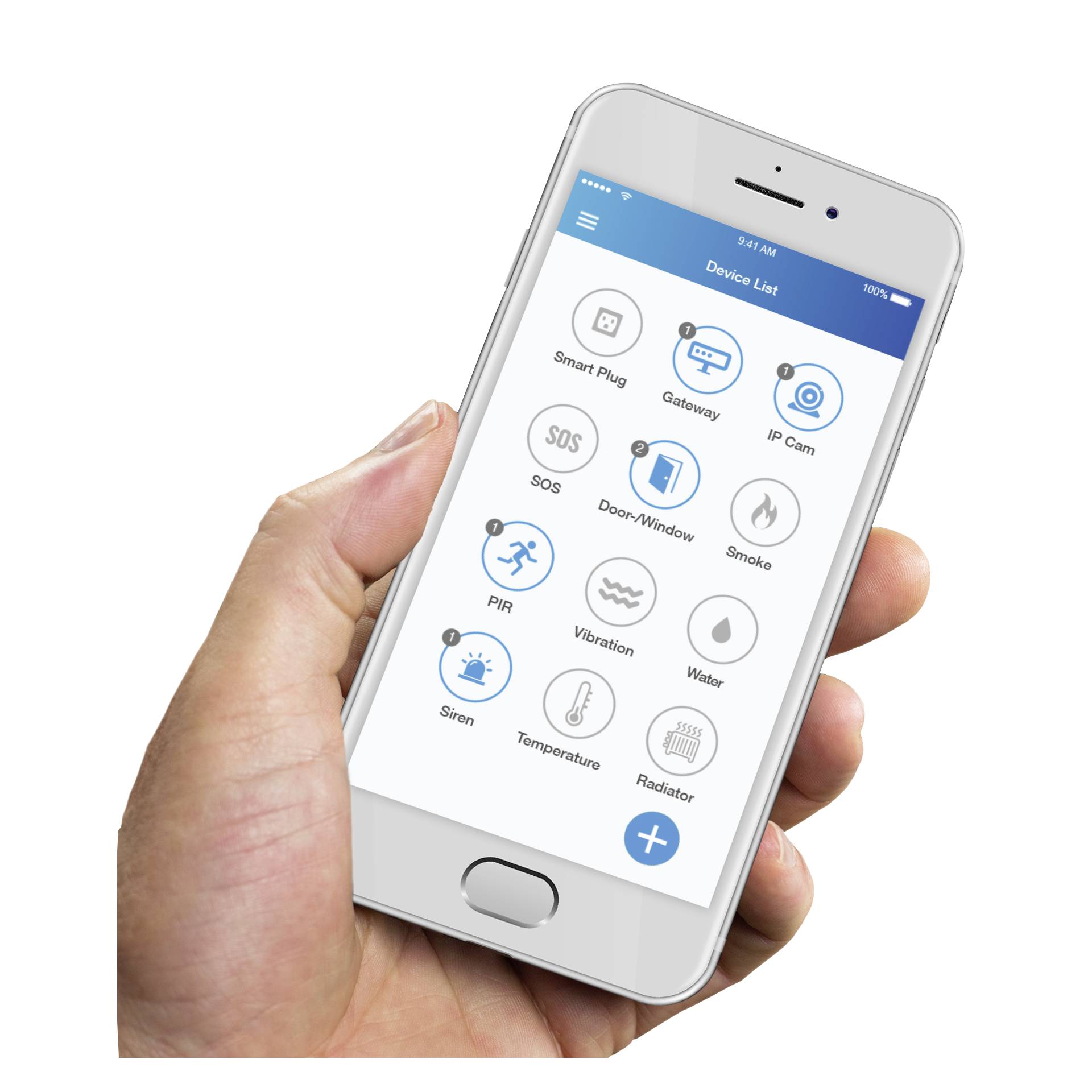 | Components | Central controller | Motion sensor | 2 x door and window sensor | Remote control | Siren | Camera |