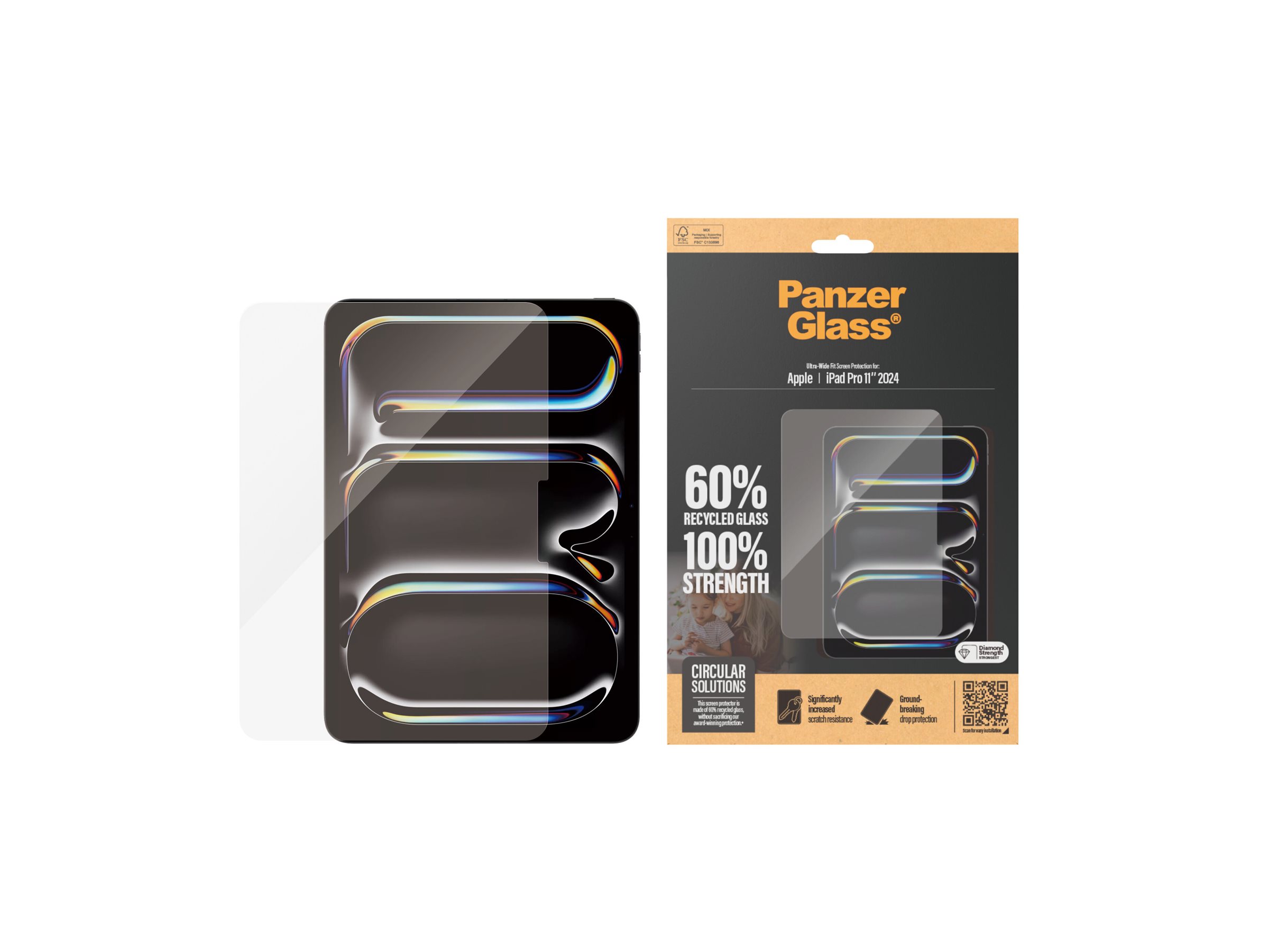 Vi præsenterer vores PanzerGlass skærmbeskytter, lavet af 60% glas. Børn elsker deres tablets. Men de skrammer, ridser, taber og smadrer også deres tablets. Sådan er det bare, og det er der ikke noget at gøre ved … eller jo, det er der faktisk: Med en skærmbeskytter fra PanzerGlass kan du holde hverdagens ups'er, hovsa'er og åh-neeeeej'er på sikker afstand af din skærm. Det hærdede glas fungerer som en diskret airbag, der beskytter din tablet mod alt fra skarpe bordkanter og stenhårde fortove til ivrige børnehænder, der slår ned i skærmen. Glasset har endda en smudsafvisende belægning med antibakteriel effekt, der reducerer fedtfingre og dræber op til 99,99 % af alle almindelige overfladebakterier. Installationen er legende let, og når skærmbeskytteren én gang er sat på, er det slut med at frygte synet af din tablet med kurs mod jorden. Det kommer muligvis aldrig til at ske, men hvis det gør, vil du fortryde, at du ikke klikkede "Tilføj til kurv". Skærmbeskytteren har størrelsen "Ultra-Wide Fit", som giver maksimal beskyttelse og en fuldendt skærmoplevelse, samtidig med at den efterlader plads til en case. Perfekt til dig, der vil beskytte hele fronten af din tablet. Og emballagen, ja, den er naturligvis FSC -mærket og kan genanvendes.
