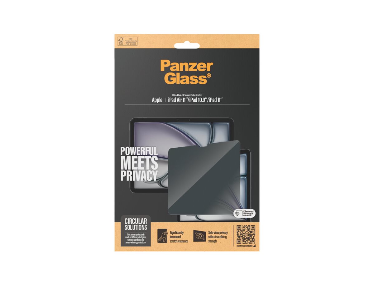 Private beskeder. Bankoplysninger. Pinkoder. Med denne skærmbeskyttelse kan du skjule dine hemmeligheder mod nysgerrige øjne hos folk, der sidder ved siden af dig i toget, i bussen eller på kontoret. Det specialdesignede privatlivsfilter gør indholdet på skærmen praktisk talt usynligt for alle andre end dig.Beskyt din iPad mod hverdagens udfordringer med PanzerGlass . Utilsigtede bump mod borde med skarpe hjørner eller drop på stenhårdt underlag er ikke noget problem for denne skærmbeskyttelse, der er modstandsdygtig over for ridser og stød. Skærmbeskyttelsen er nem at montere, og når den er sat på, behøver du aldrig mere bekymre dig over at se din iPad falde. Det kan være, det aldrig sker – men hvis det gør, vil du fortryde, at du ikke trykkede på "Tilføj til kurv".Skærmbeskyttelsen Edge-to-Edge dækker hele iPad'ens forside, samtidig med at der er plads til et cover.