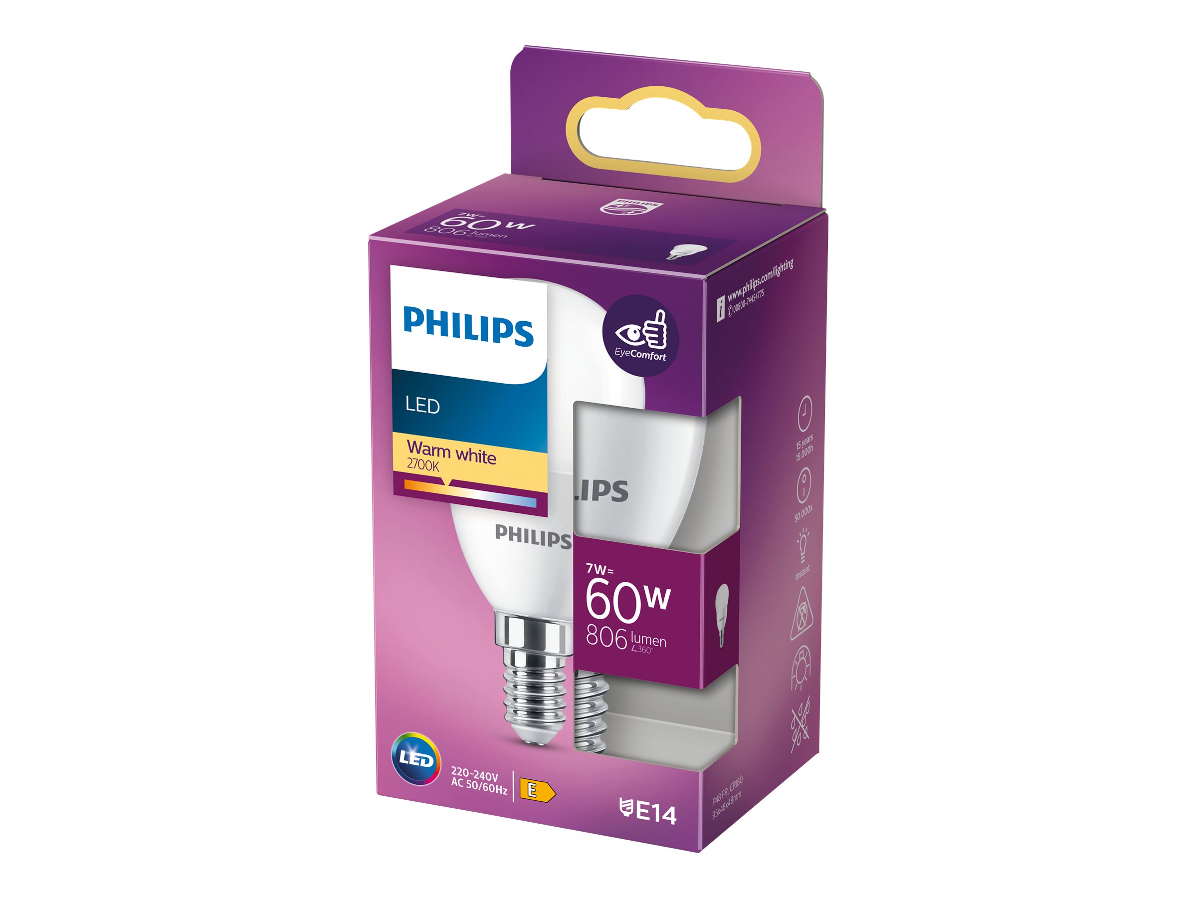 | Produktbeskrivelse | Philips - LED-lyspære - form: P48 - matteret finish - E14 - 7 W - varmt hvidt lys - 2700 K |