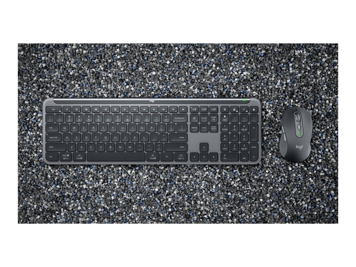 | Produktbeskrivelse | Logitech Signature Slim Combo MK950 for Business - sæt med mus og tastatur - QWERTY - US International - grafit Indgangsudstyr |