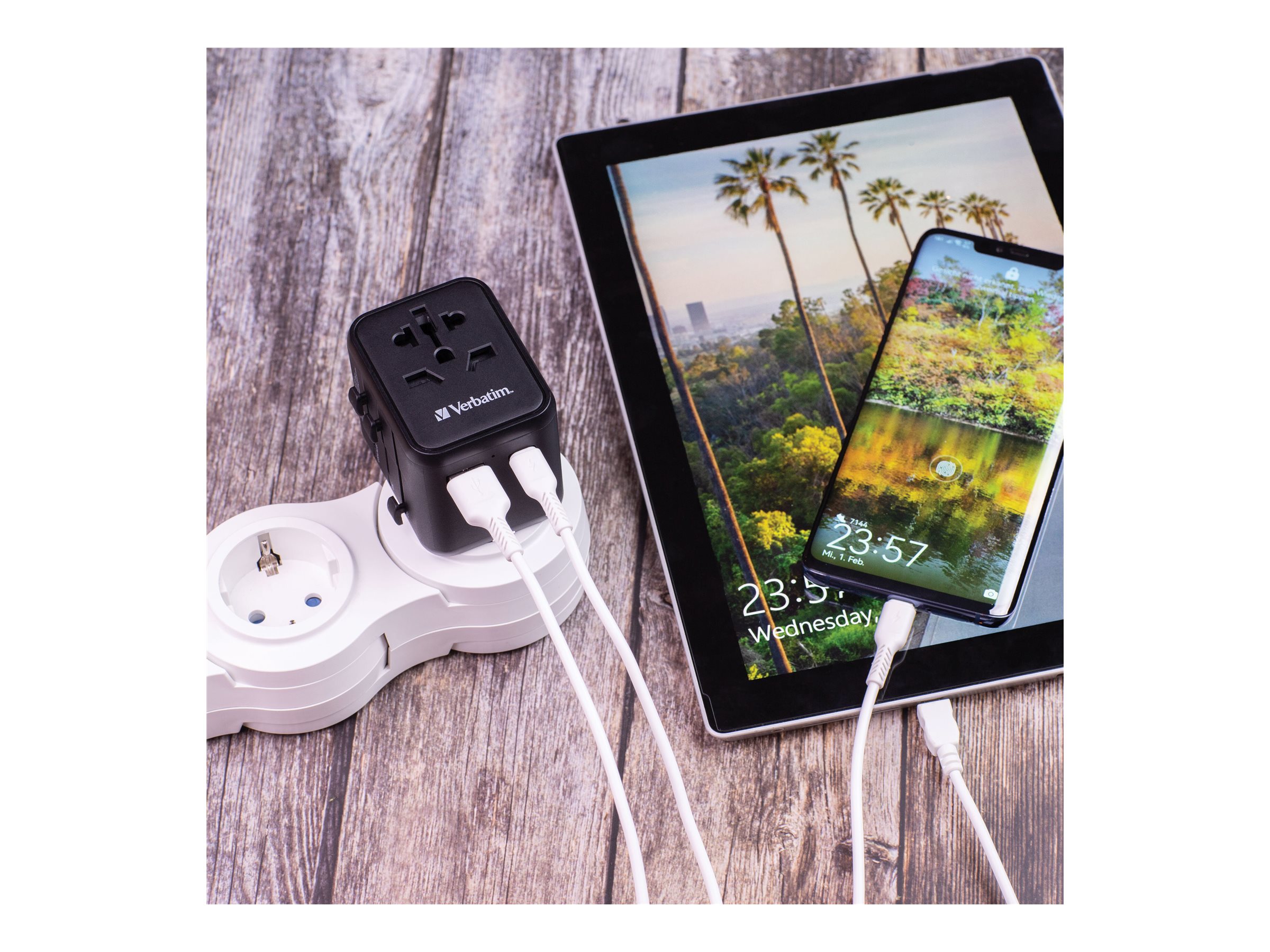 Verbatim UTA-02 - Strømforsyningsadapter - 20 Watt - 3 A - QC 3.0 - 3 output-stikforbindelser (USB, BS 1362, USB-C)