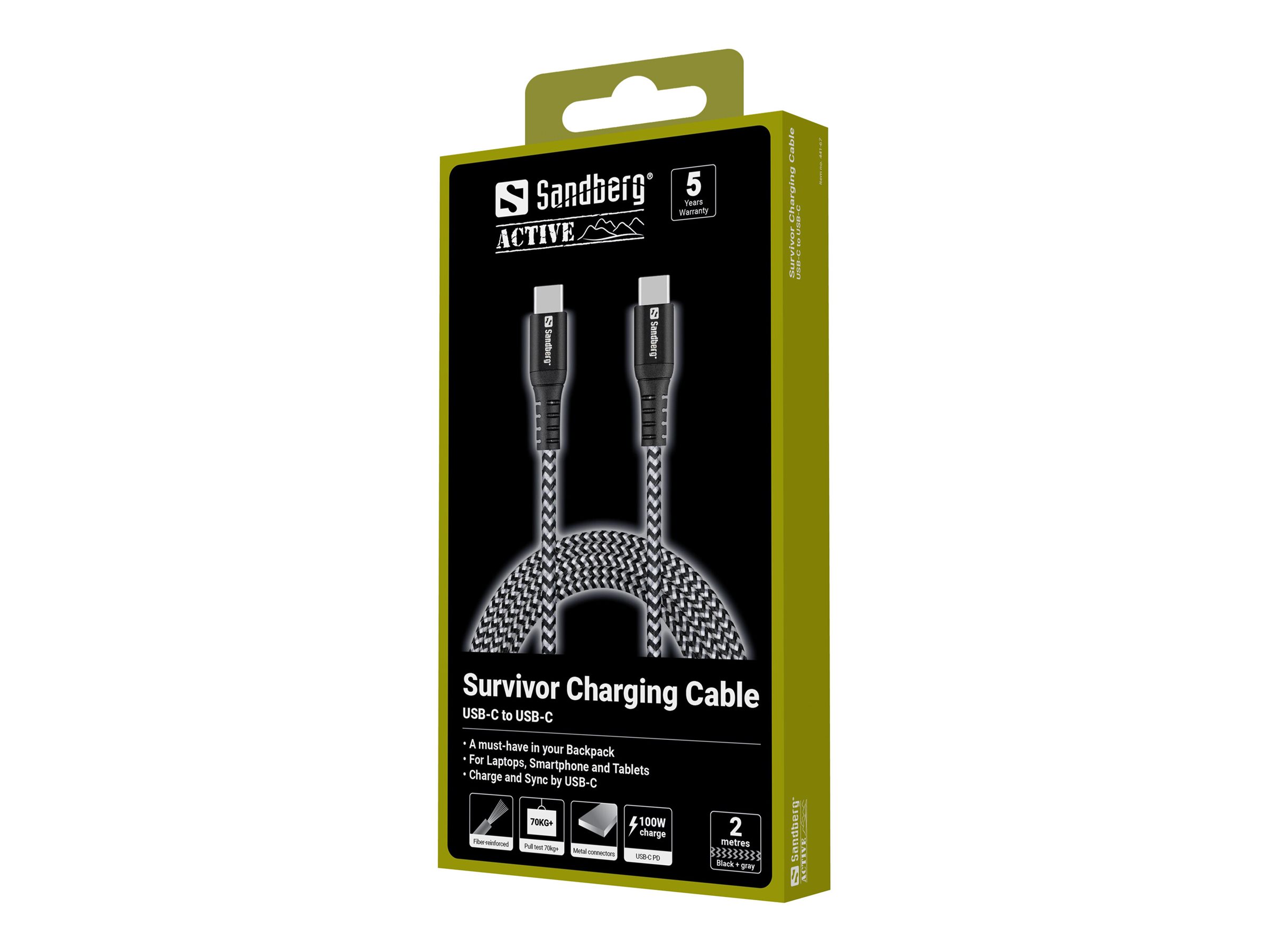 | Produktbeskrivelse | Sandberg Survivor - USB Type-C kabel - USB-C til USB-C - 2 m |