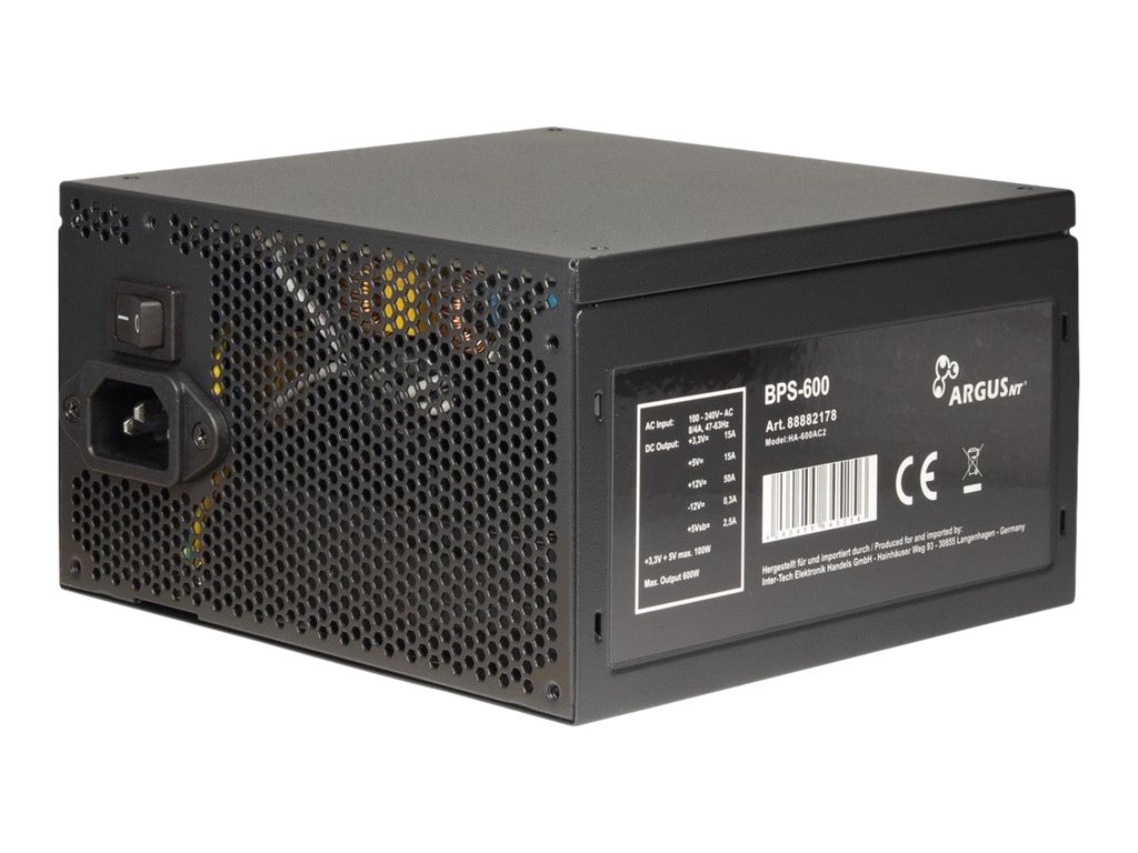 Argus BPS-600 - Strømforsyning (intern) - ATX12V 2.4 - 80 PLUS Bronze - AC 100/240 V - 600 Watt - aktiv PFC