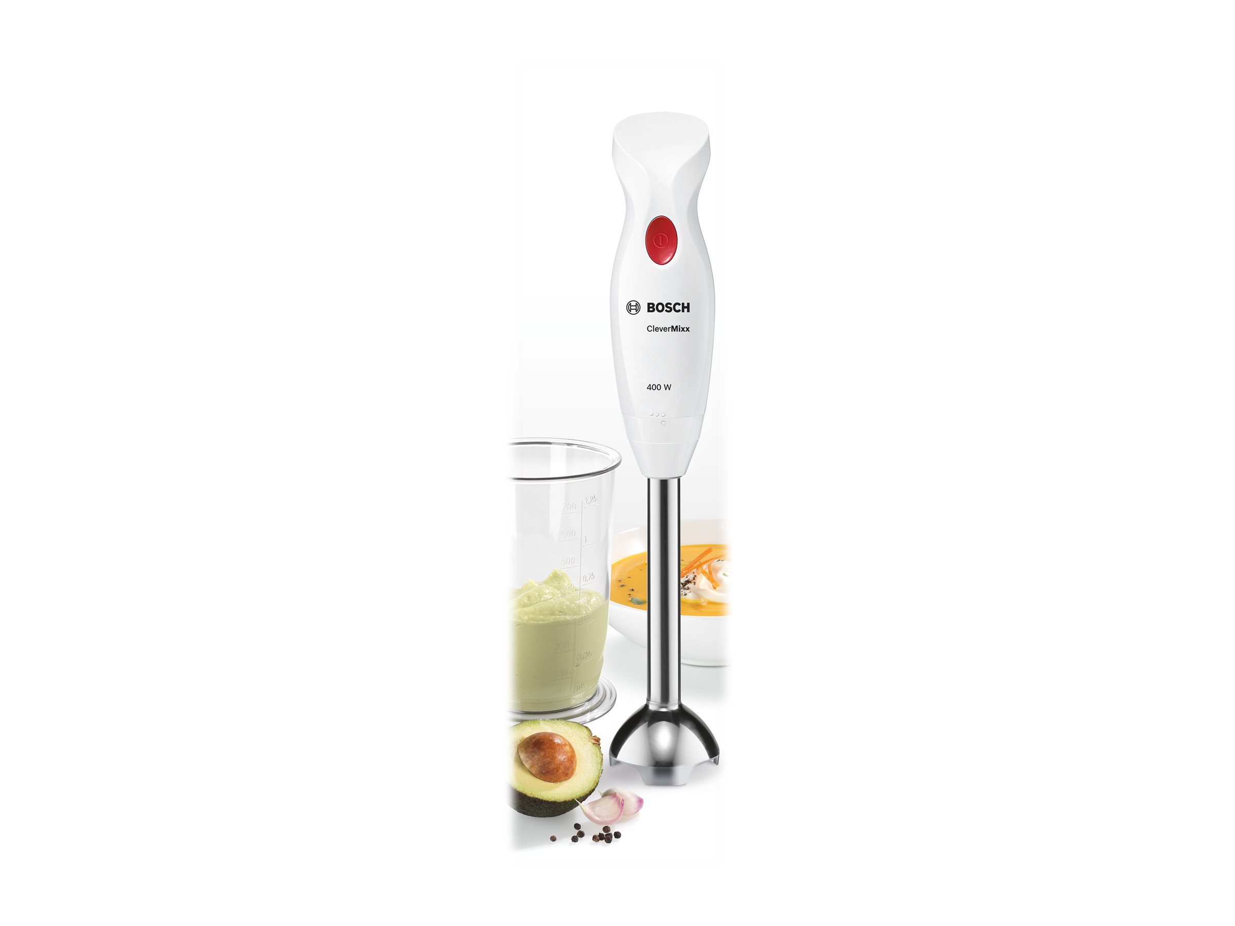 | Produktbeskrivelse | Bosch CleverMixx MSM24100 - stavblender - hvid/rød |