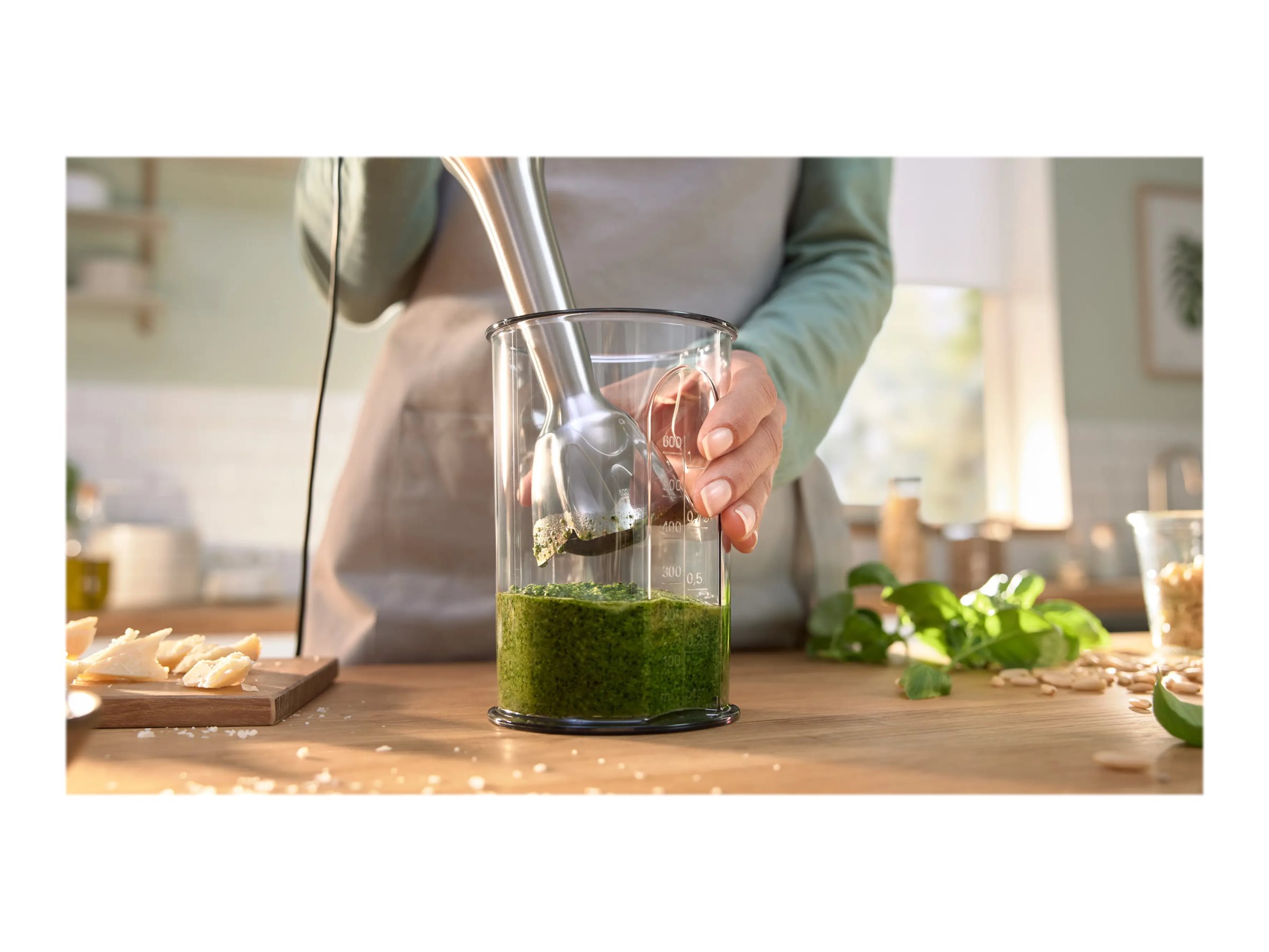 Sammen med et målebæger og QuattroBlade-knive leveres blenderen med vigtige værktøjer til at lette forskellige madlavningsbehov.
