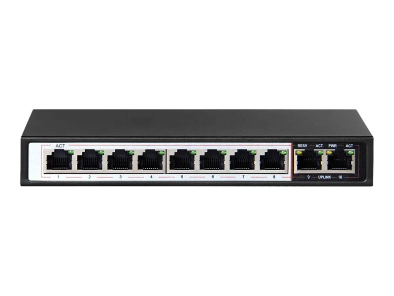 | Portar | 8 x 10/100 (PoE+) + 2 x 10/100 (upplänk) |