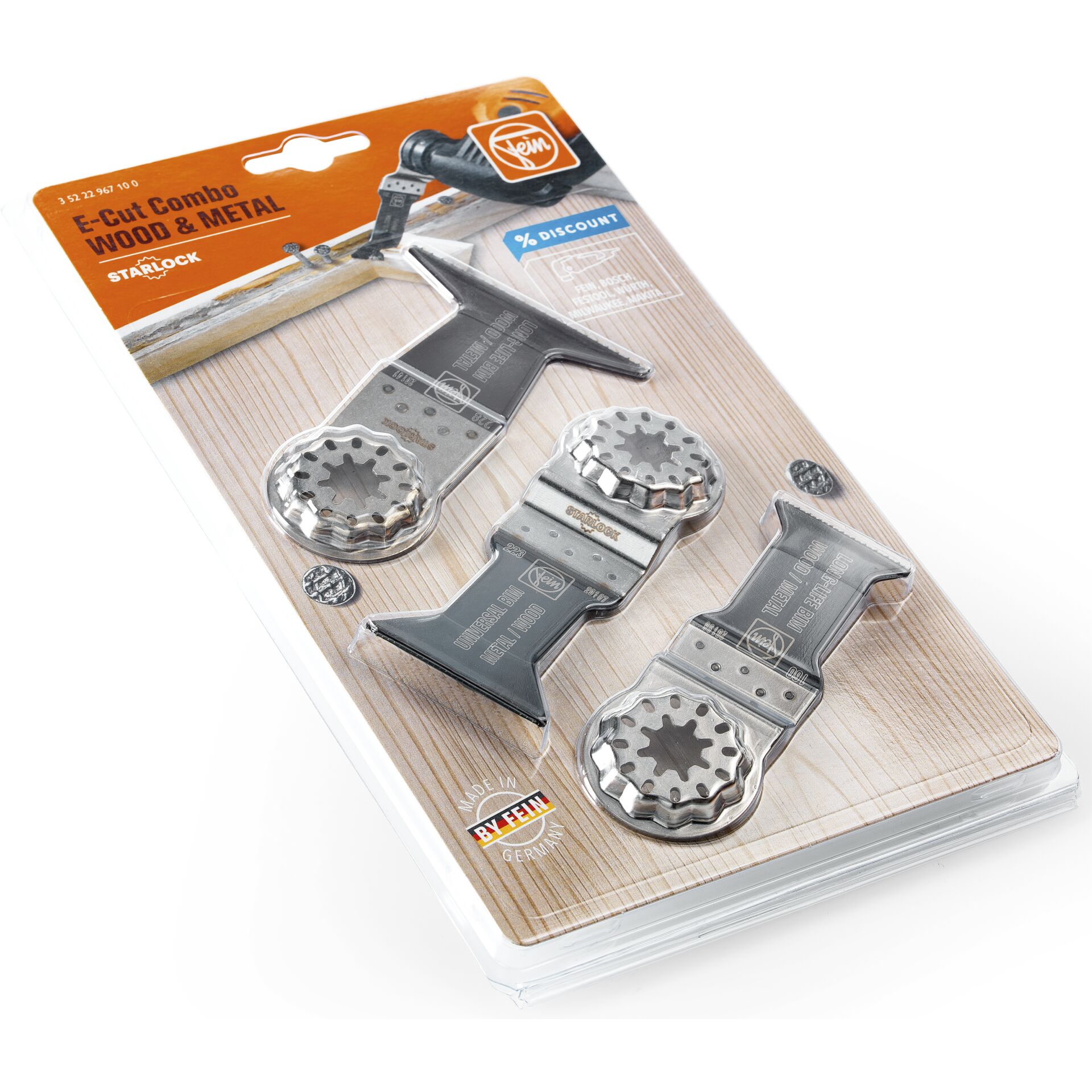 Fein E-Cut Combo Wood and Metal - Stiksavsklingesæt - for træ, metal - 3 stykker - Starlock WOOD & METAL - for MultiMaster AMM 700; MultiMaster MM 300; MultiMaster AMM 500