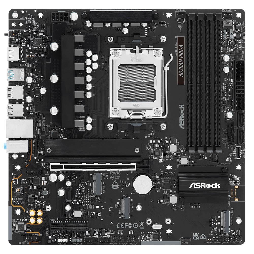 Asrock A620AM Pro-A - mATX - Socket AM5 - 4x DDR5 slots - HDMI 2.1 - DisplayPort 1.4 - Dragon RTL8125BG