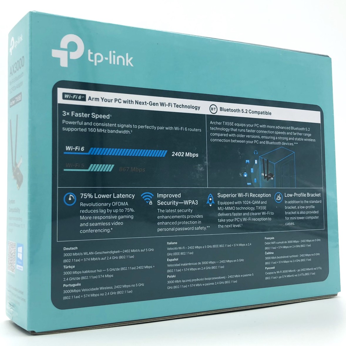 Med understøttelse af Bluetooth 5.2- og Wi-Fi 6-standarder sikrer ARCHER TX55E V2, at dine enheder forbliver forbundet med større stabilitet og hastighed. Nyd problemfri streaming og spiloplevelser uden forsinkelser.