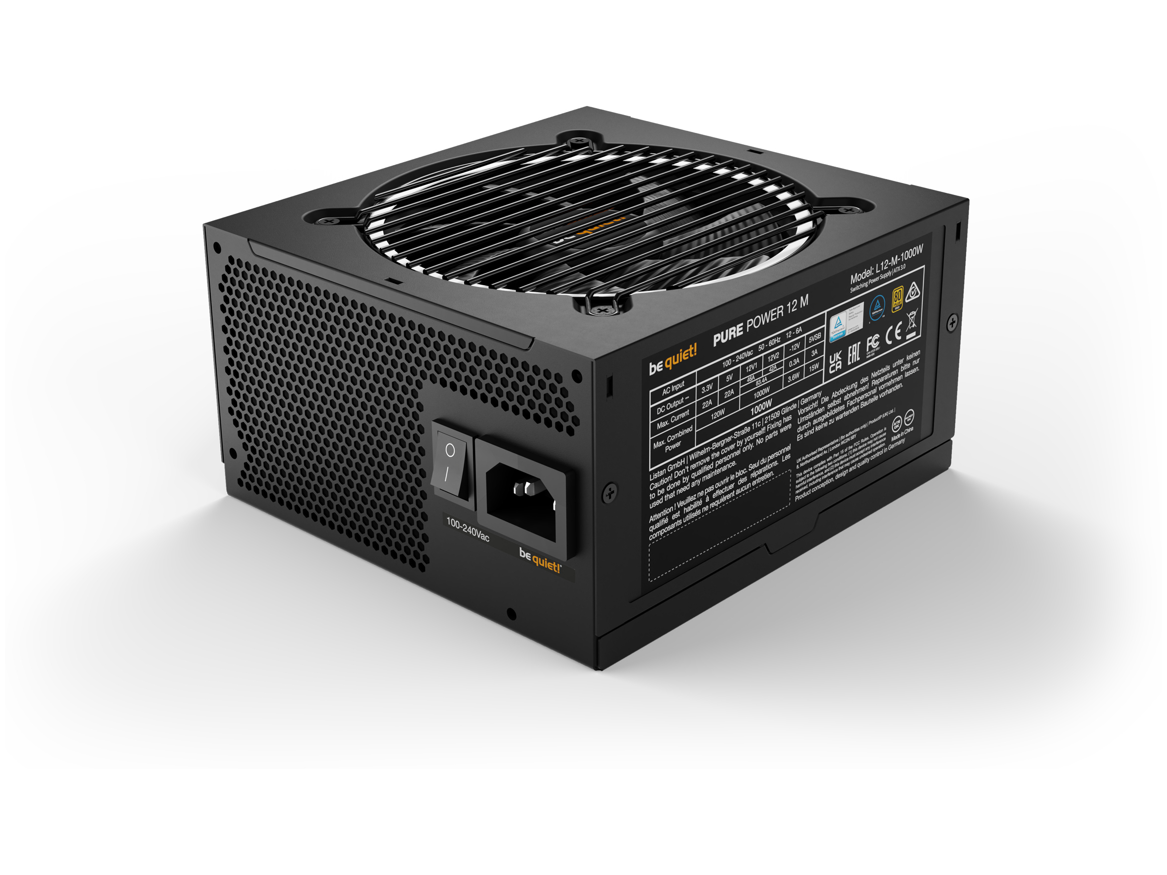 be quiet! PURE POWER 12 1000W Strømforsyning - 1000 Watt - 120 mm - ATX 3.1 - 80 Plus Gold certified
