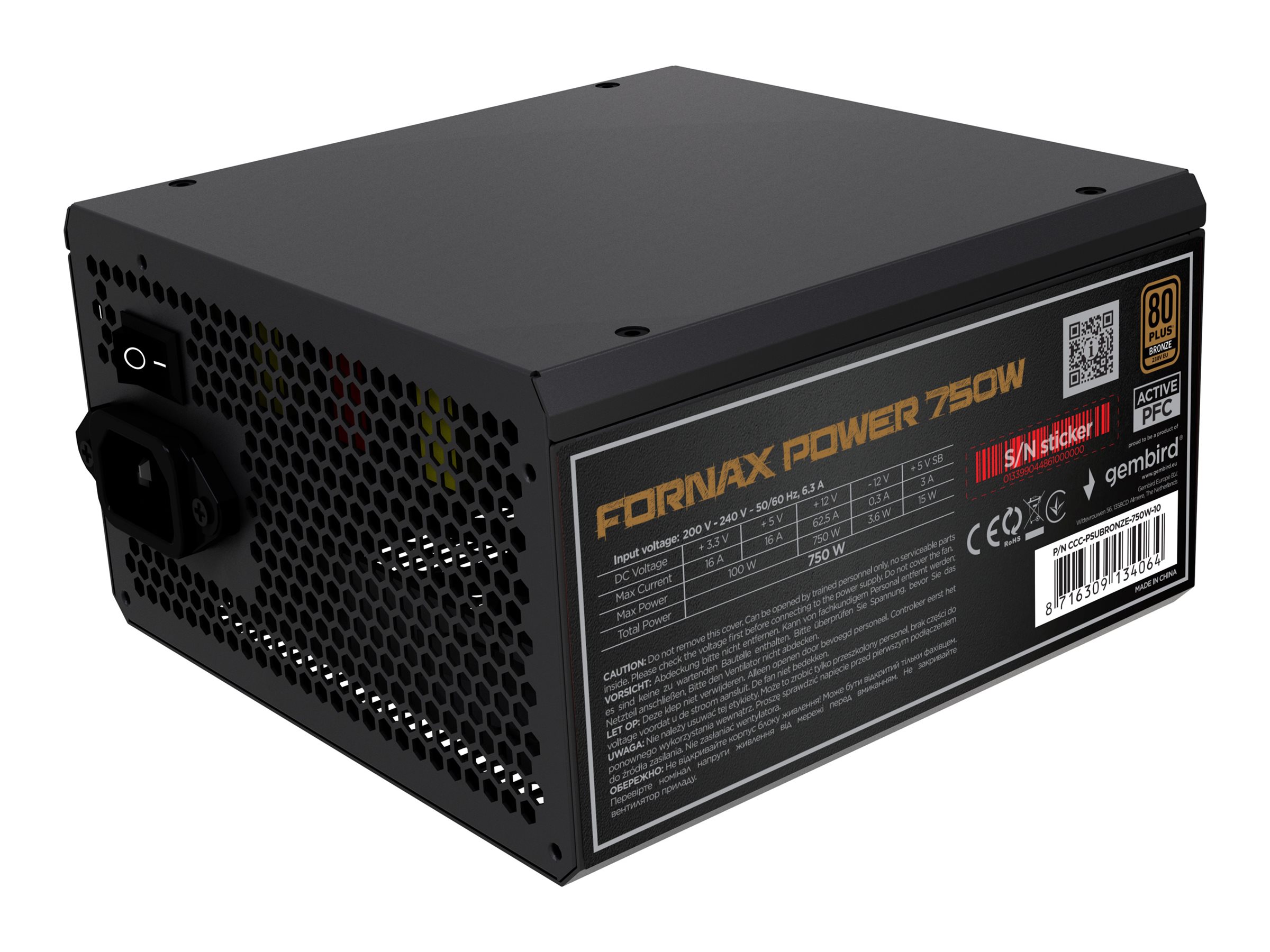 | Produktbeskrivelse | Gembird CCC-PSUBRONZE-750W-10 - strømforsyning - 750 Watt |