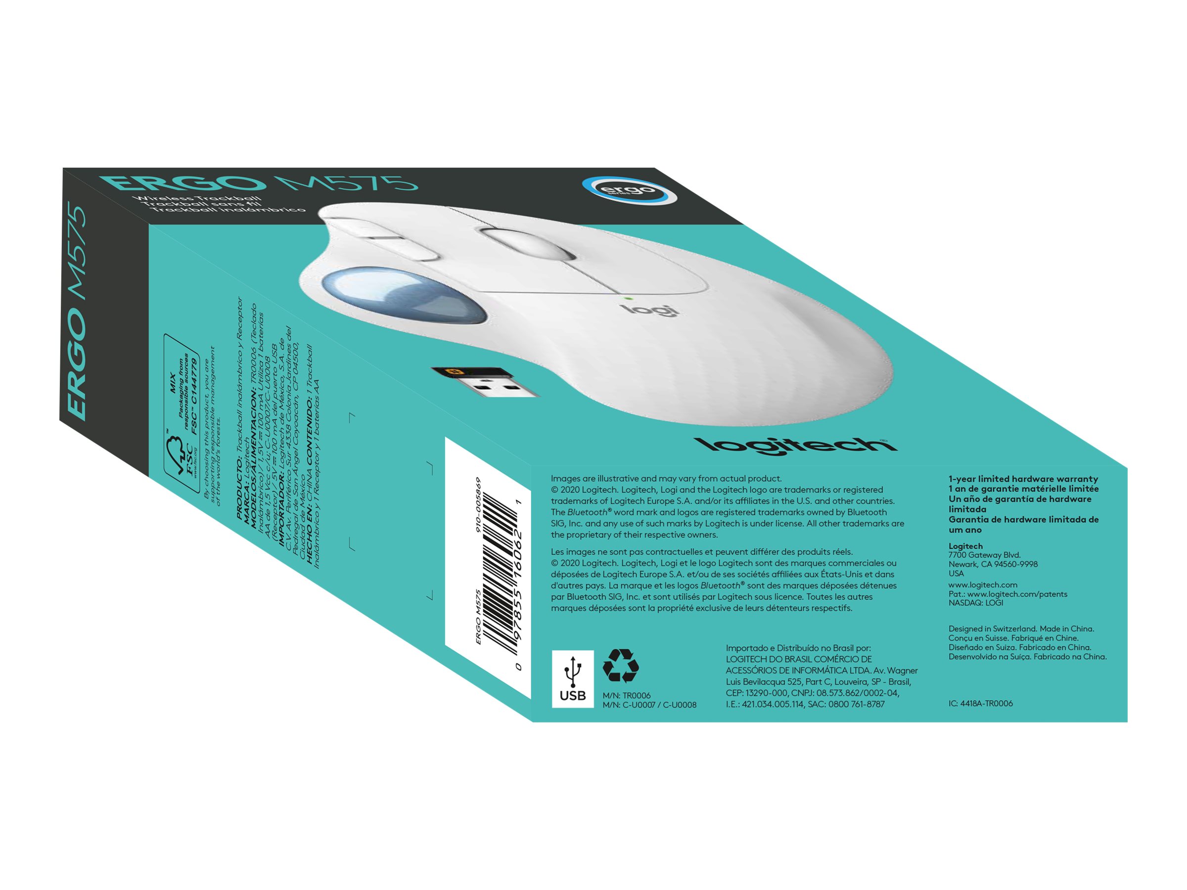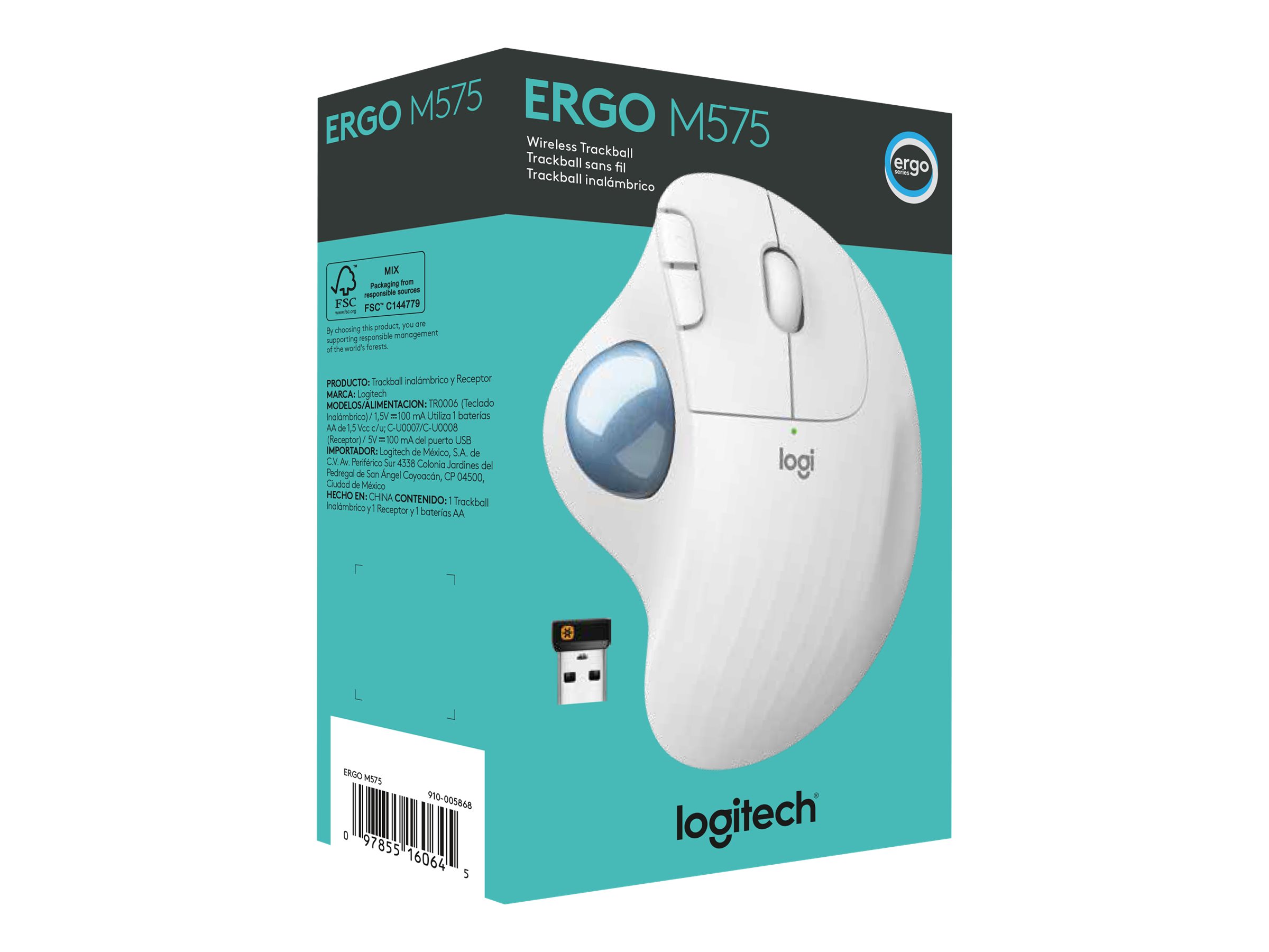 | Produktbeskrivelse | Logitech Ergo Series ERGO M575 - styrebold - 2.4 GHz, Bluetooth 5.0 LE - off white |