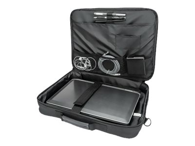 Produktbeskrivelse Manhattan Cambridge Laptop Bag 15.6", Clamshell Design, Black, LOW COST, Accessories Pocket, Document Compartment on Back, Shoulder Strap (removable), Equivalent to Targus TAR300, Notebook Case, Three Year Warranty - bæretaske til notebook