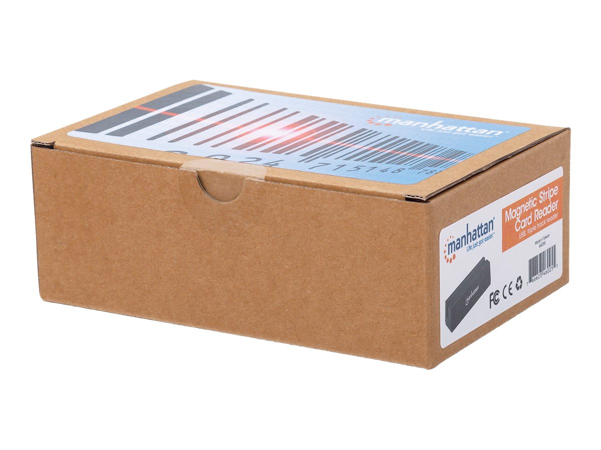 | Produktbeskrivelse | Manhattan USB-A Magnetic Strip Card Reader, Triple Track Reader, Keyboard Wedge Decoder, Cable 1.5m, Black, Three Year Warranty, Box - magnetisk kortlæser - USB |
