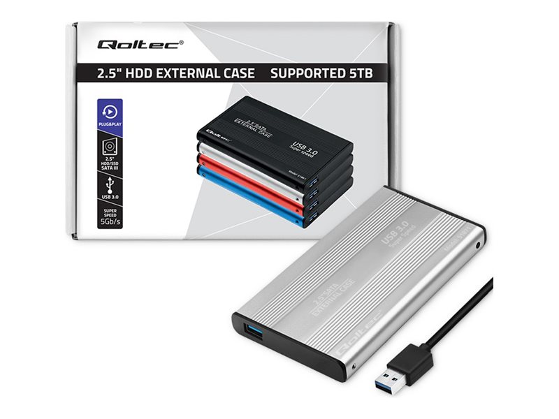 Qoltec - Lagringspakning - 2.5" - SATA 6Gb/s - USB 3.0 - sølv