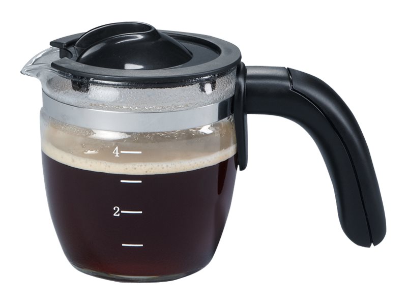 | Egenskaper för kaffebryggare | Avtagbart droppgaller, autoavstängning, säkert borttagningsbara delar till diskmaskin, säkerhetsspärr, automatisk tryckutjämningsfunktion, ångmunstycke, glasvärmekaraff, graderad kanna |