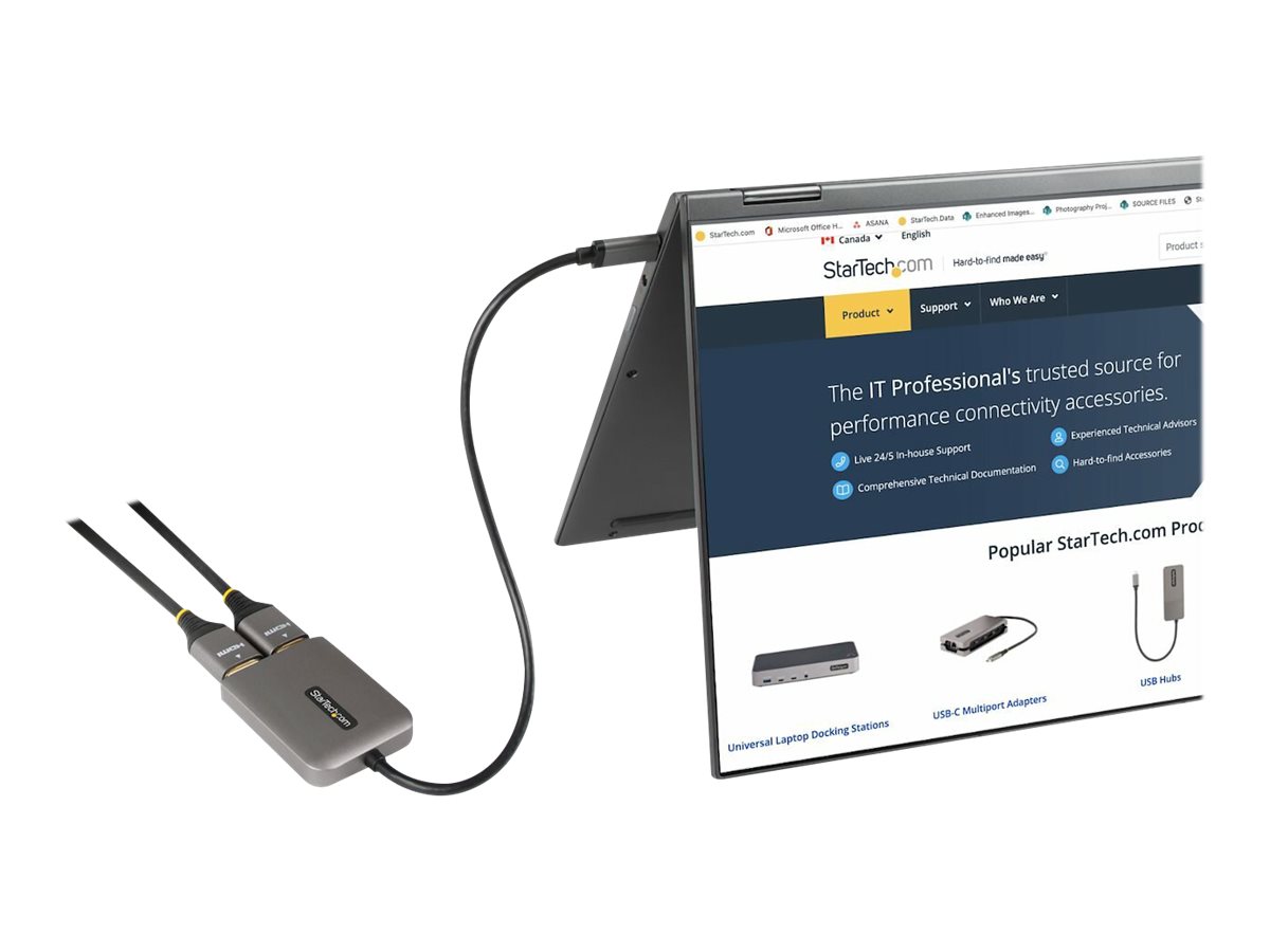 Produktbeskrivelse Startech USB-C to Dual HDMI MST HUB, Dual HDMI 4K 60Hz, USB Type C Multi Monitor Adapter for Laptop w/ 1ft (30cm) cable, DP 1.4 Multi-Stream Transport Hub, USB Type C to 2x HDMI Ports - USB-C to HDMI Splitter (MST14CD122HD) - videoadapter - DisplayPort / HDMI