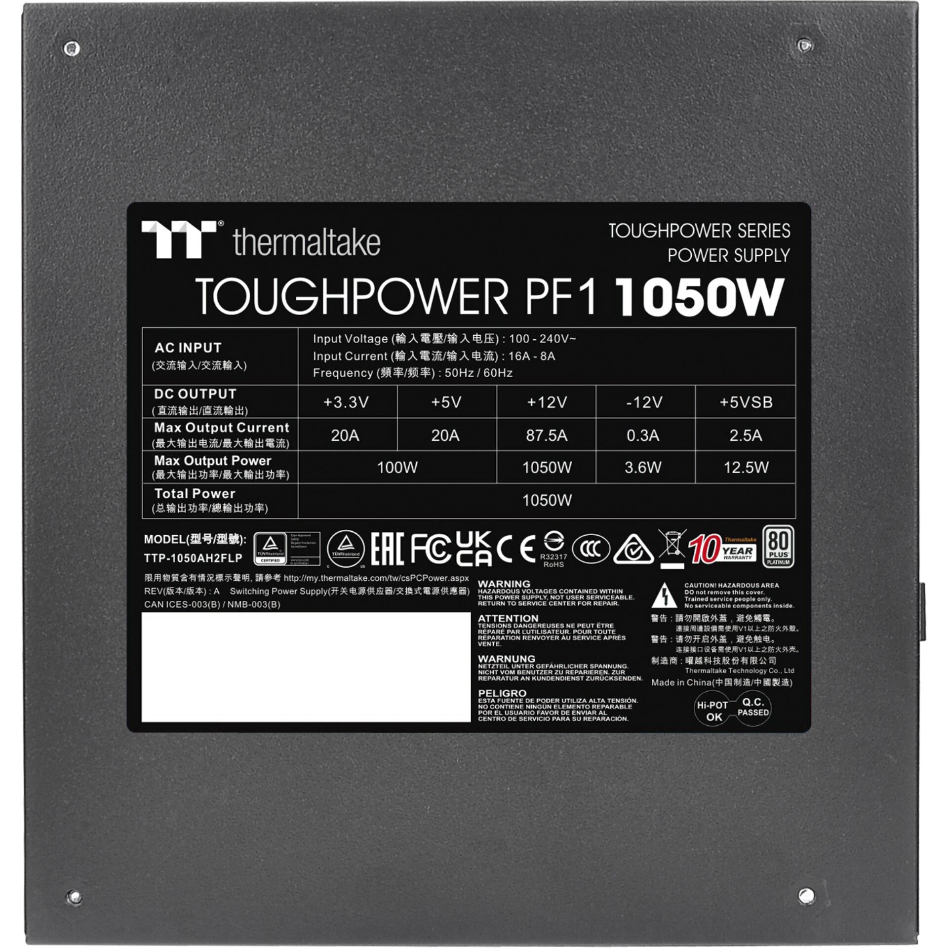 | Kombineret effekt (+12 V) | 1050 W |