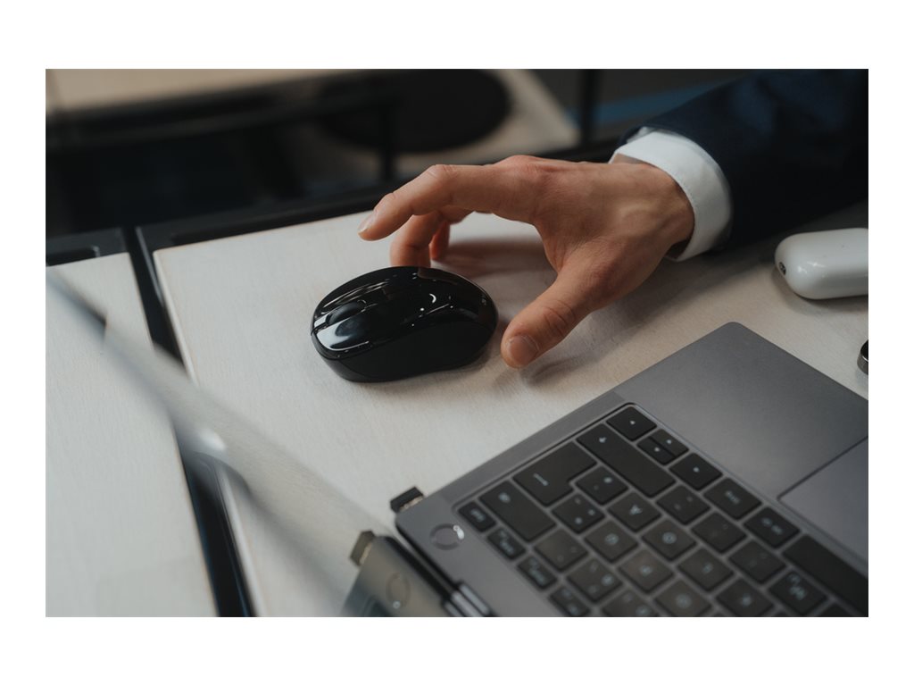 For at bruge musen skal du blot tilslutte nano-modtageren til en USB-port og tænde for musen. Nano-modtageren er også så lille, at den kan tilsluttes og blive siddende, så musen er ideel, hvis du er på farten eller gerne vil have orden på dit skrivebord.