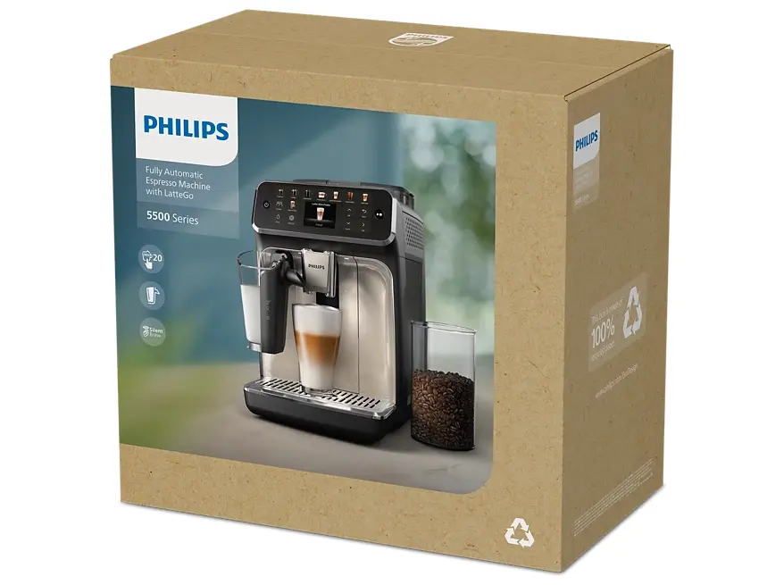 | Produktbeskrivelse | Philips 5500 series EP5541 - automatisk kaffemaskine med mælkeskummer - 15 bar - blank sort |