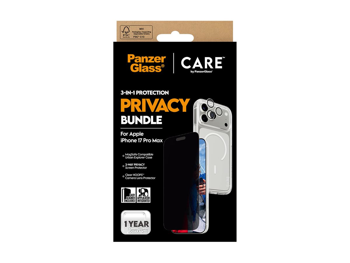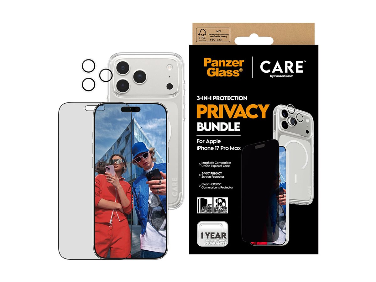 | Produktbeskrivelse | CARE by PanzerGlass - 3-i-1 beskyttelse privatlivspakke - bagsidecover til mobiltelefon |