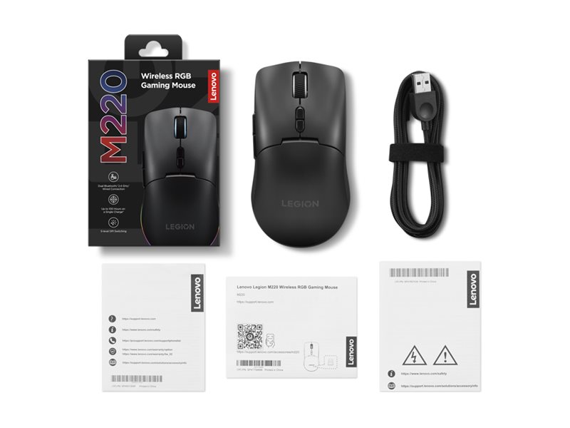 | Produktbeskrivelse | Lenovo Legion M220 - mus - 2.4 GHz, USB, Bluetooth - sort |