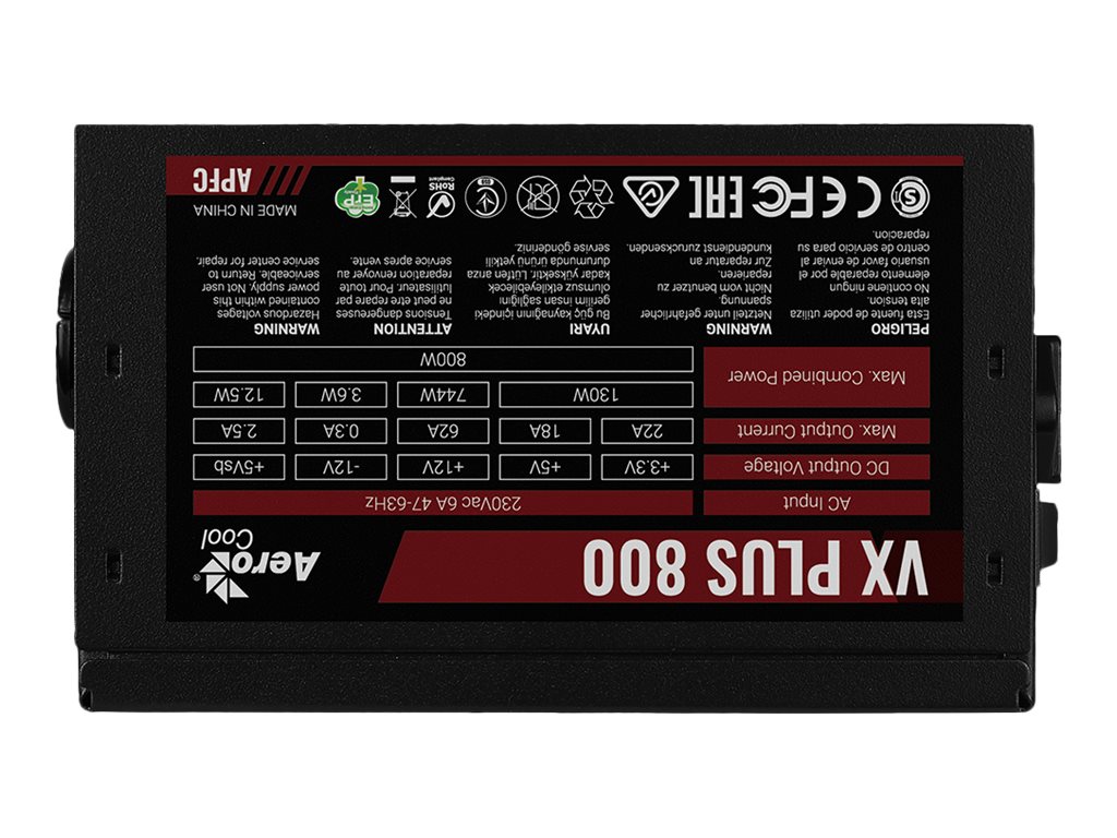| Produktbeskrivelse | AeroCool VX PLUS 800 - strømforsyning - 800 Watt |