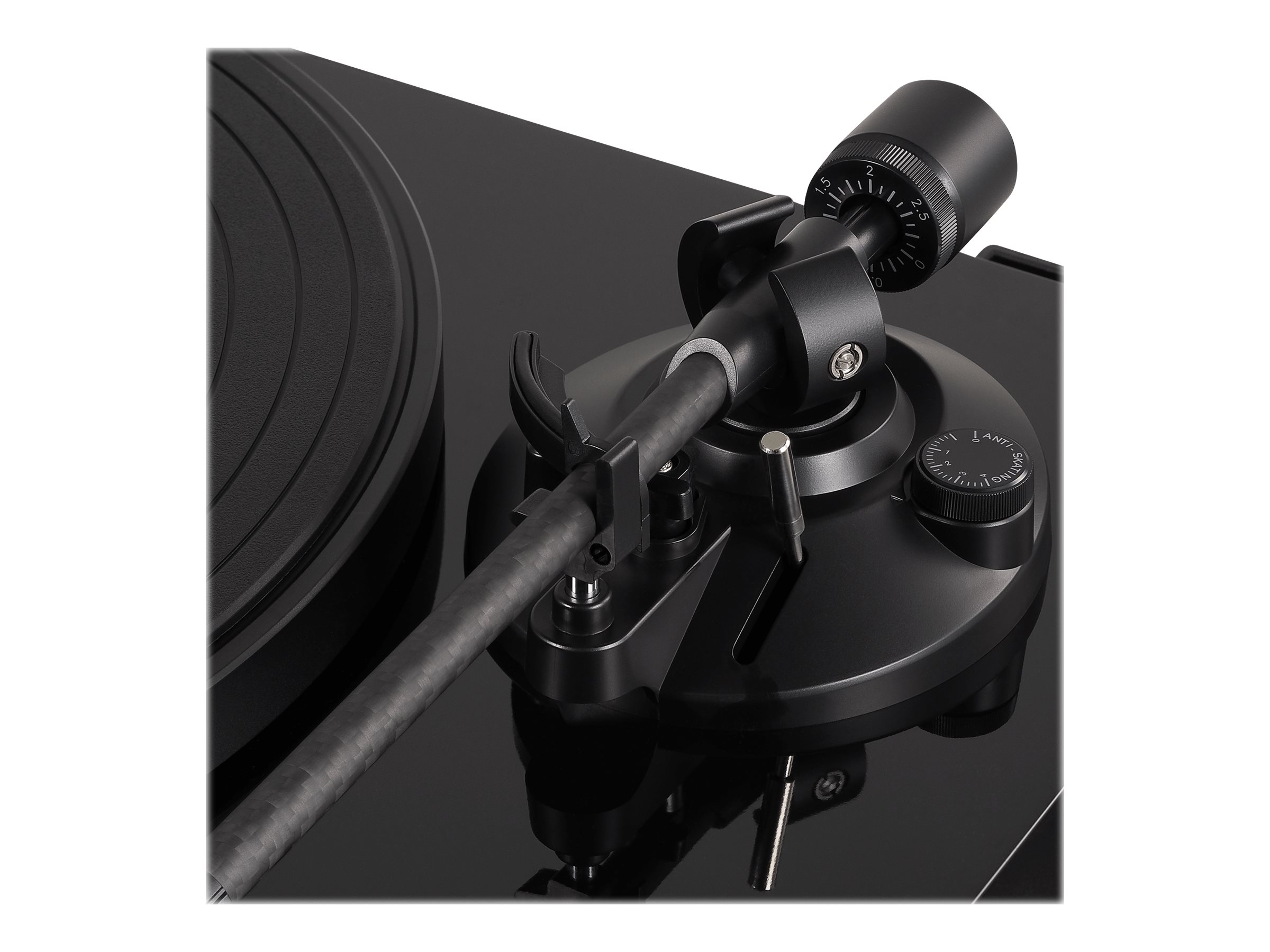 AT-LPW50PB er udstyret med en lige tonearm i kulfiber med mat finish og leveres med en AT-HS4 universal ½"-monteret headshell og en specialversion af den alsidige AT-VM95E Dual Moving Magnet phono-patron.