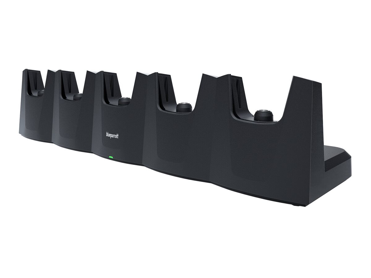 Boost din produktivitet med BlueParrotts nye 5-slot opladningsbase. Denne station er designet til at gøre arbejdet lettere for dine teams og kan oplade op til fem BlueParrott-headset samtidigt* for at opfylde alle deres behov. En rød LED indikerer, når et headset oplades. Når enheden er fuldt opladet, bliver LED'en blå, så dine medarbejdere kan finde de rigtige enheder til at arbejde under de bedste forhold, og dine teams kan holde forbindelsen hele tiden. Fem opladningspladser for 5-stjernet effektivitet * Opladningstiden afhænger af headsettet.