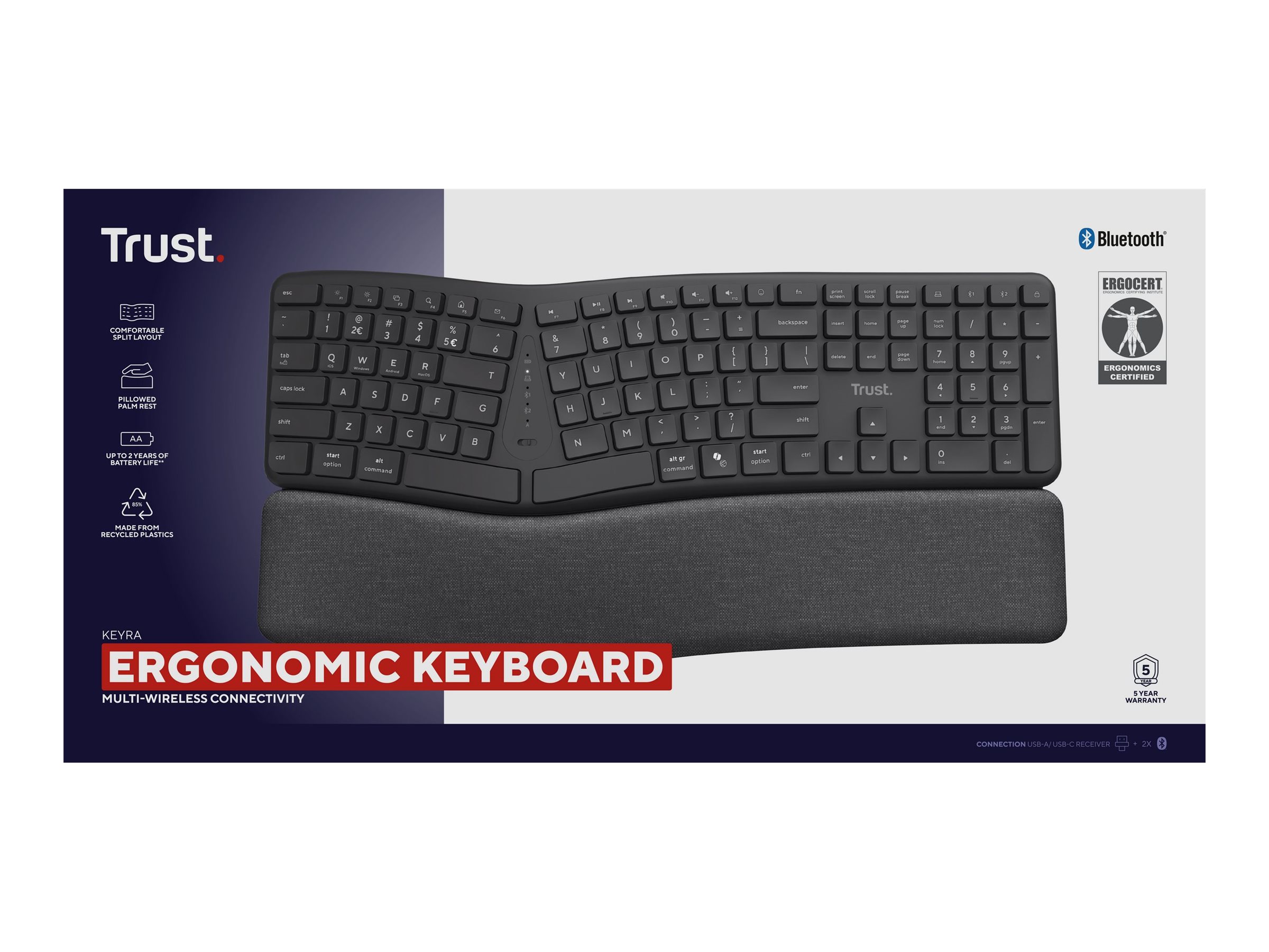 | Enhedstype | Tastatur - ergonomisk (splittet og buet) |