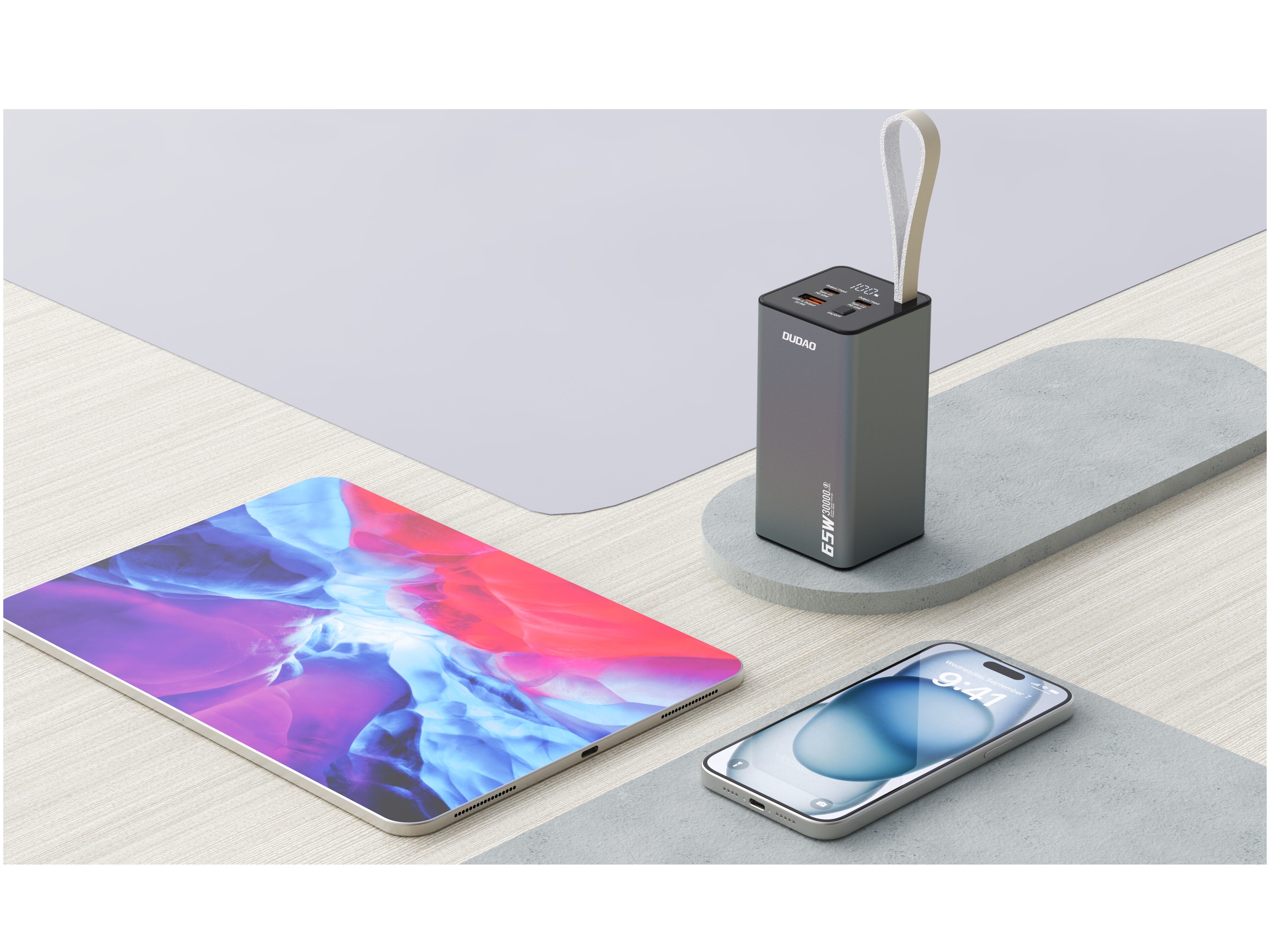 Dudao - Powerbank - 30000 mAh - 65 Watt - 3.25A - 3 output-stikforbindelser (USB-A x1, USB-C x2) - Black
