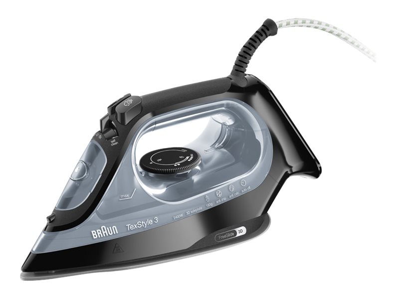 | Produktbeskrivelse | Braun TexStyle 3 SI 3055 BK - dampstrygejern - såleplade: FreeGlide 3D SuperCeramic |