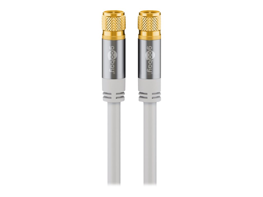 goobay - Antennekabel - F-stik han til F-stik han - 1 m - firelagsskjold - 135 dB - hvid - solid