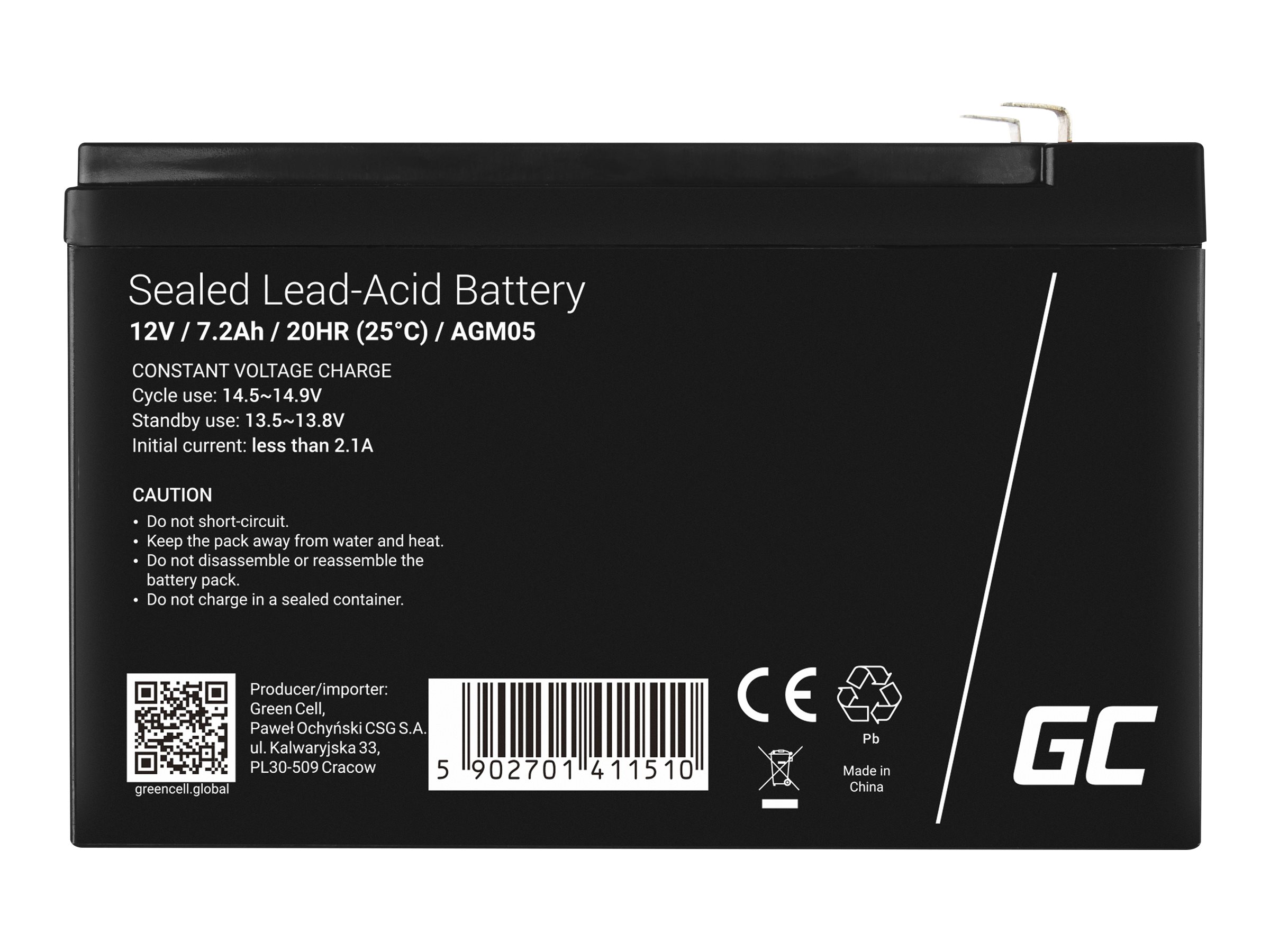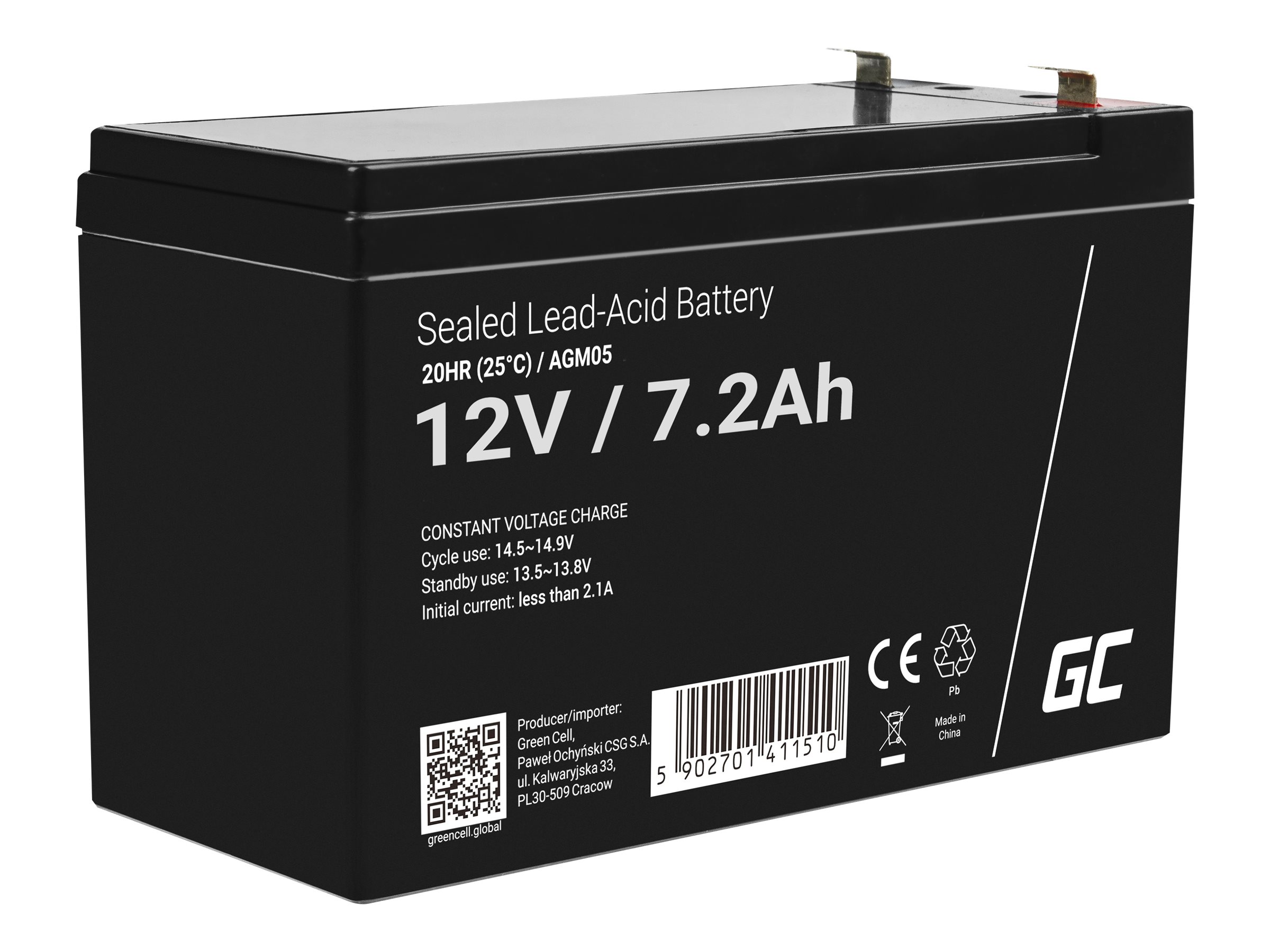 | Produktbeskrivelse | Green Cell - UPS-batteri - Sealed Lead Acid (SLA) - 7.2 Ah |