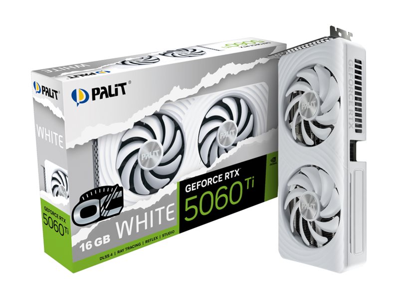 | Produktbeskrivelse | Palit OC - grafikkort - GeForce RTX 5060 Ti - 16 GB - hvid |