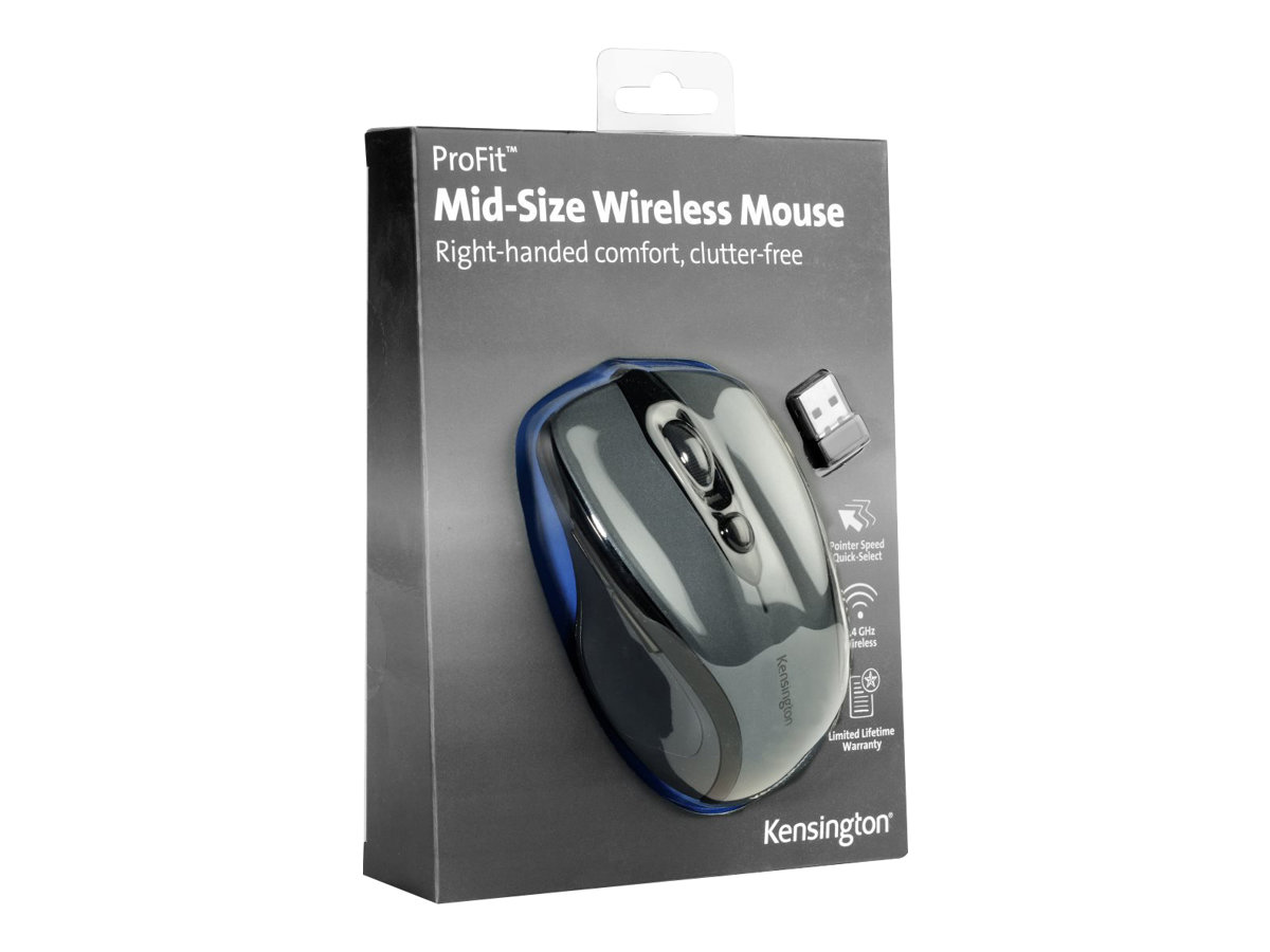 | Produktbeskrivelse | Kensington Pro Fit Mid-Size - mus - 2.4 GHz - grafitgrå |