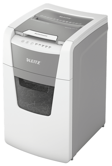 Fuldautomatisk makulator fra Leitz med unik tømningsfunktion uden rod. Så intelligent, at den roligt fungerer på egen hånd, bare indsæt din stak med papirer (inkl. hæfteklammer og papirclips), luk låget og fortsæt med andet arbejde. Ideel til kontorbrug. Fortrolig sikkerhed og fremragende ydelse med denne anti-blokerings, stille autofeed-makulator med lang løbetid (30 min.) Makulerer automatisk 150 A4 ark (80 g) i sikkerhedsniveau P4 (4x30mm) krydsmakuleringsstykker i én omgang ned i den generøse 44L beholder. Enkel betjening ved hjælp af touch-kontrolknapper.