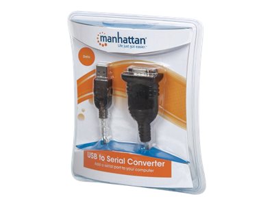 | Produktbeskrivelse | Manhattan USB-A to Serial Converter cable, 45cm, Male to Male, Serial/RS232/COM/DB9, Prolific PL-2303RA Chip, Black/Silver cable, Three Year Warranty, Blister - USB / serielkabel - USB til DB-9 - 45 cm |