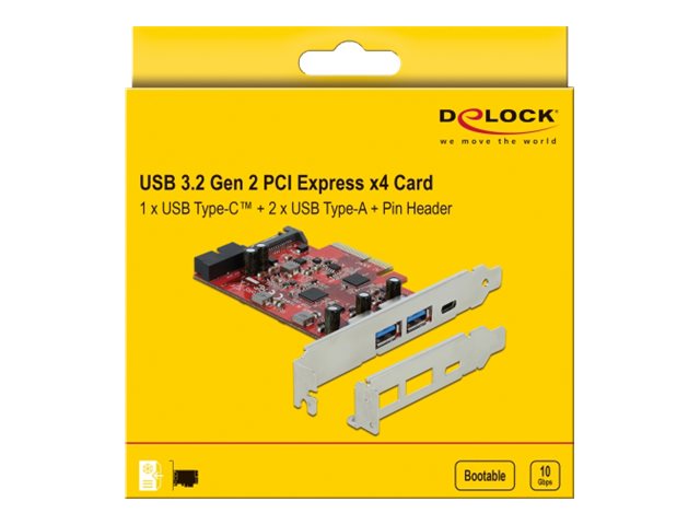 | Produktbeskrivelse | Delock - USB-adapter - PCIe 3.0 x4 - USB 3.2 Gen 2 x 3 + USB 3.0 (intern) x 1 |