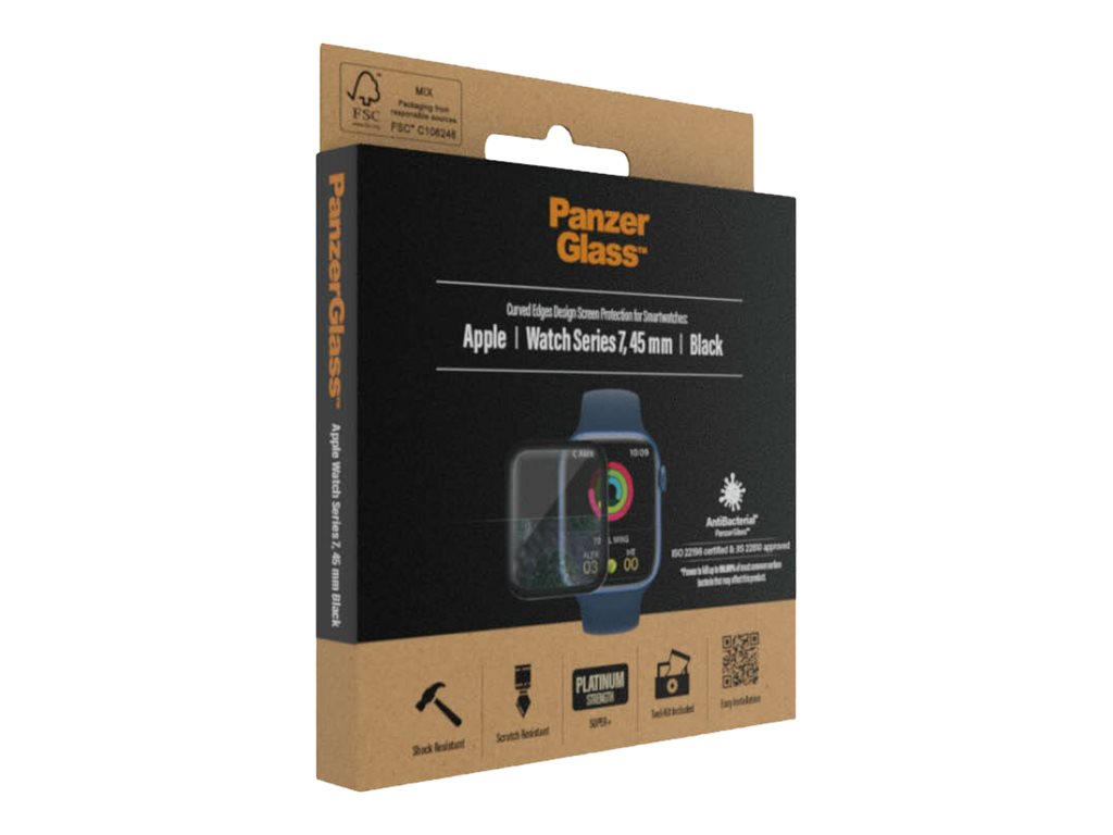 Beskyt dit ur mod hverdagens udfordringer med PanzerGlass . Utilsigtede bump mod gelændere, elevatordøre og bordkanter er ikke noget problem for dette skærmbeskyttelsesglas, der er modstandsdygtigt over for ridser og stød. Det beskytter endda dit ur, selvom du ved et uheld skubber det ned fra natbordet eller vasken på et stenhårdt gulv. Som en ekstra bonus dræber den fingeraftryksafvisende overfladebehandling med antibakteriel effekt op til 99,99 % af alle almindelige overfladebakterier og reducerer spor af fedtfingre og snavs. Skærmbeskyttelsesglasset er let at sætte på, og når det først er monteret, behøver du aldrig mere frygte den ubehagelige lyd af glas mod metal. Det kan være, det aldrig sker – men hvis det gør, vil du fortryde, at du ikke trykkede på "Tilføj til kurv".Glasset dækker skærmen og leveres i FSC -mærket emballage, der kan genbruges.