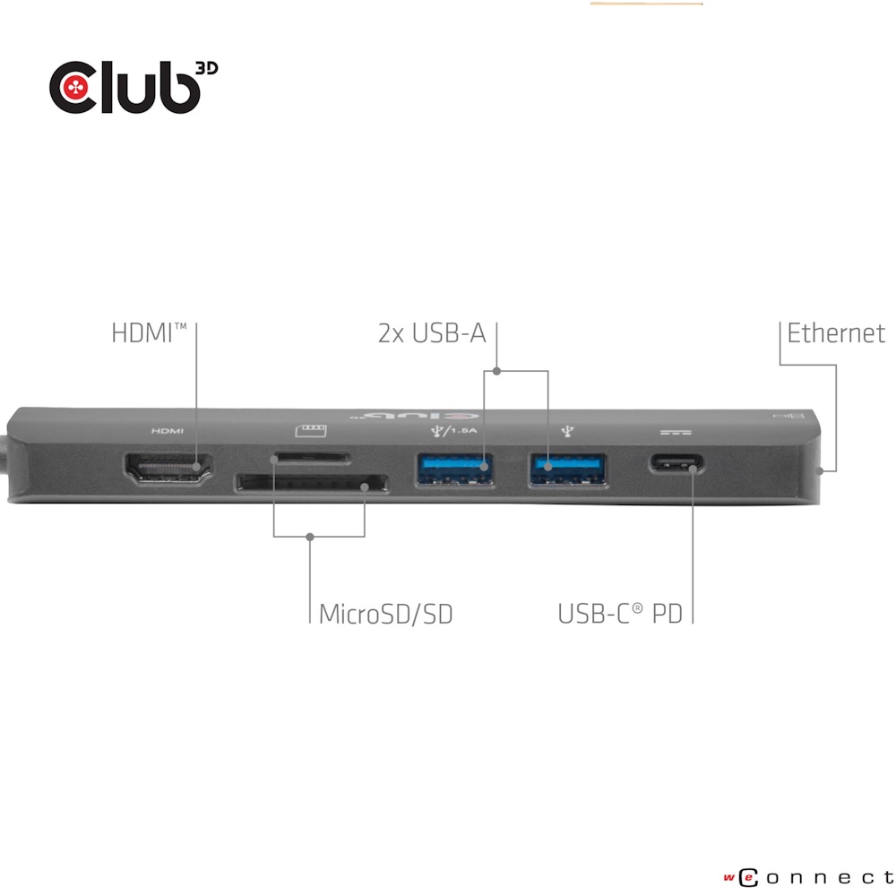 Club 3D 7-in-1 USB-C Hub - HDMI 4K60Hz - PD 100W - 2x USB-A, 1x USB-C, 1x HDMI, 1x Ethernet, 1x MicroSD