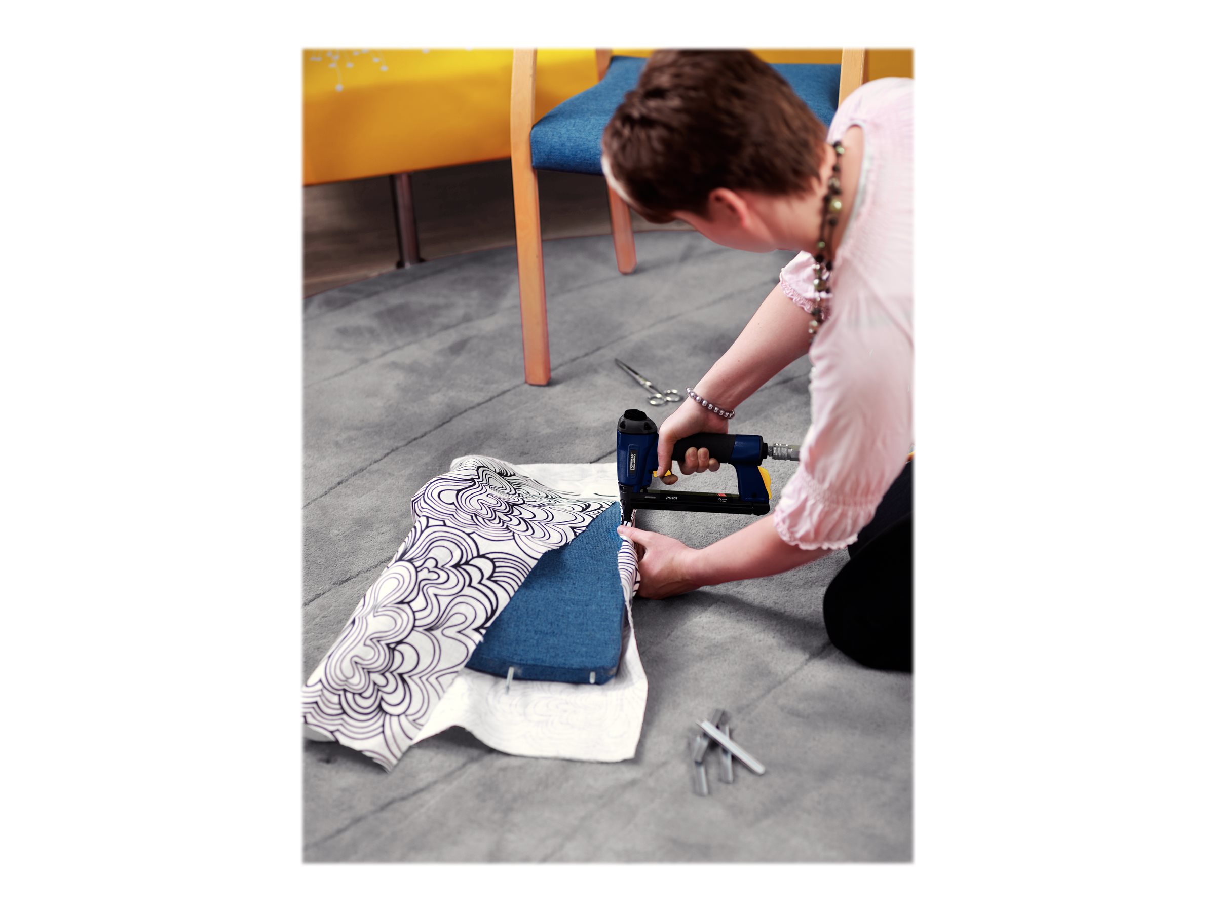PS101 er let, nem at manøvrere og alsidig takket være konstruktionen i magnesium og den lange tud til præcisionsopgaver. En pneumatisk hæftepistol, der er perfekt til arbejde i højt tempo med tekstiler, læder, vægtæpper, etiketter og lettere samlinger. Den er kompakt og ergonomisk designet, og den flade front giver sømmet en kortere afstand til væggen. Derudover har den et luftudtag, der kan justeres 360°, så støvet kan holdes væk fra arbejdsoverflader, sikkerhedslåsesystem, hurtig opfyldningsfunktion og en no-mar-pude, der beskytter arbejdsoverflader. Det perfekte værktøj til krævende gør-det-selv-brugere.