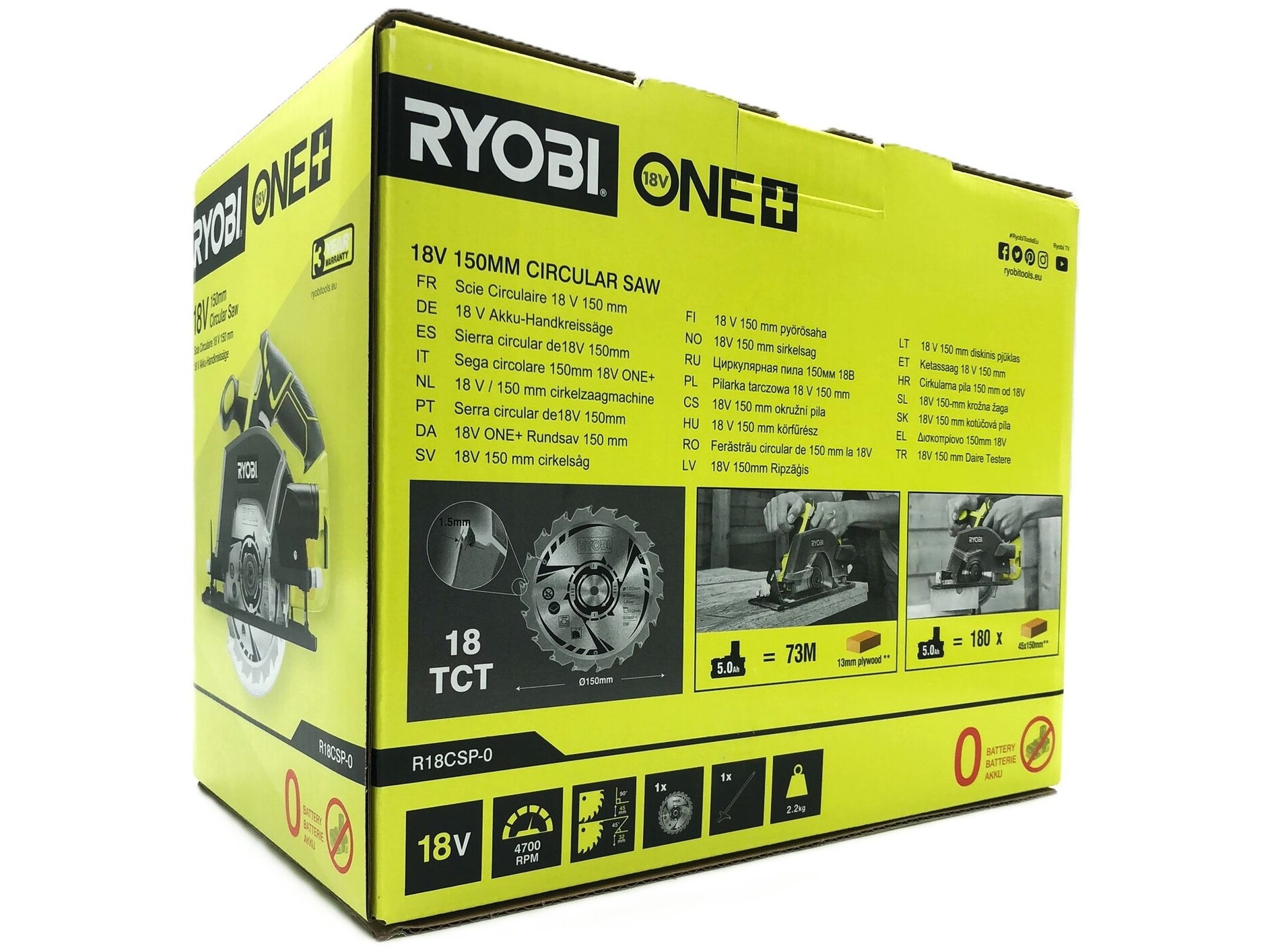 Ryobi One+ R18CSP-0 - Cirkelsav - ledningfri - 150 mm - intet batteri - 18 V